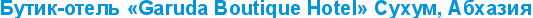 Garuda бутик-отель В этом году появляется новое перспективное направление многопрофильной компании «Гаруда-Экспресс» — Бутик-Отель «Garuda», который непременно порадует Вас своим гостеприимством. Отель расположен в самом центре Сухума – столицы Абхазии, всего в нескольких минутах ходьбы от моря и представляет собой семиэтажный корпус с лифтом. Изюминкой отеля стал его дизайнерский интерьер, оформленный в колоритном восточном стиле, где каждый этаж соответствует своей стране — Египет, Турция, Китай, Индия. Сама архитектура здания, в которой прослеживаются элементы Востока, примечательна своим особым шармом. Бутик-отель прекрасно подойдет как для молодежного отдыха и деловых поездок, так и для активного семейного отдыха, а также для тех людей, кому важны стиль и высокий уровень сервиса и комфорта.