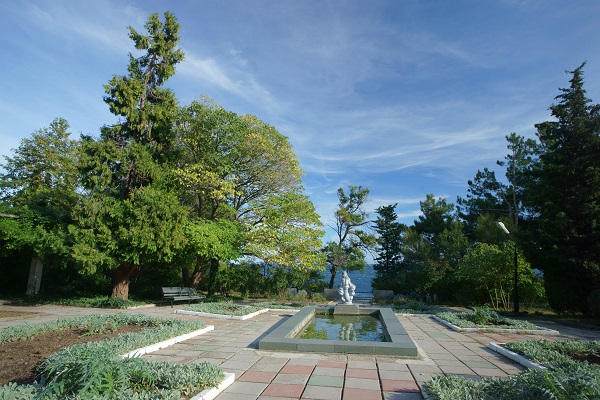 Благоустроенные площадки, дорожки для терренкуров, уголки отдыха и аллеи, переходящие в лес, со знаменитой Солнечной тропой, которая соединяет санаторий с "Ливадийским дворцом".