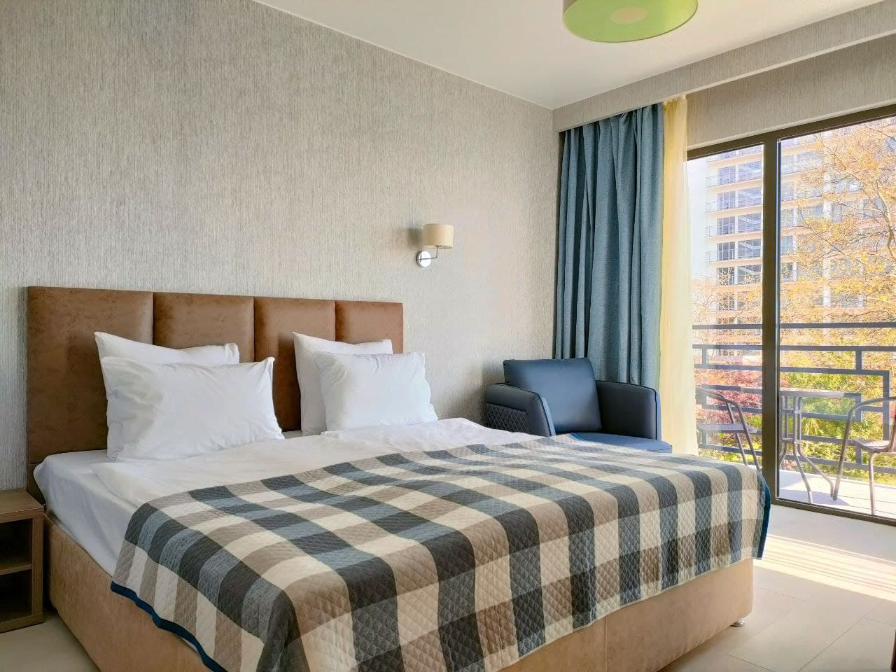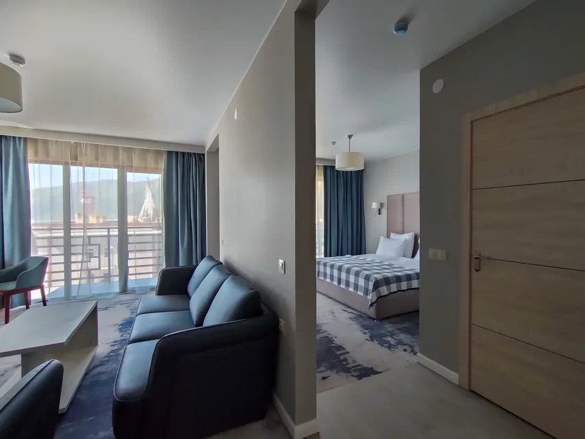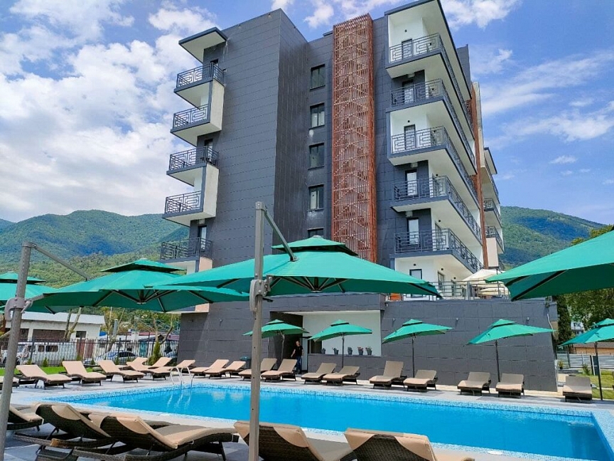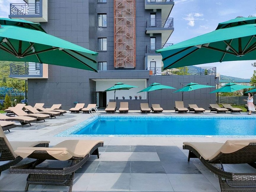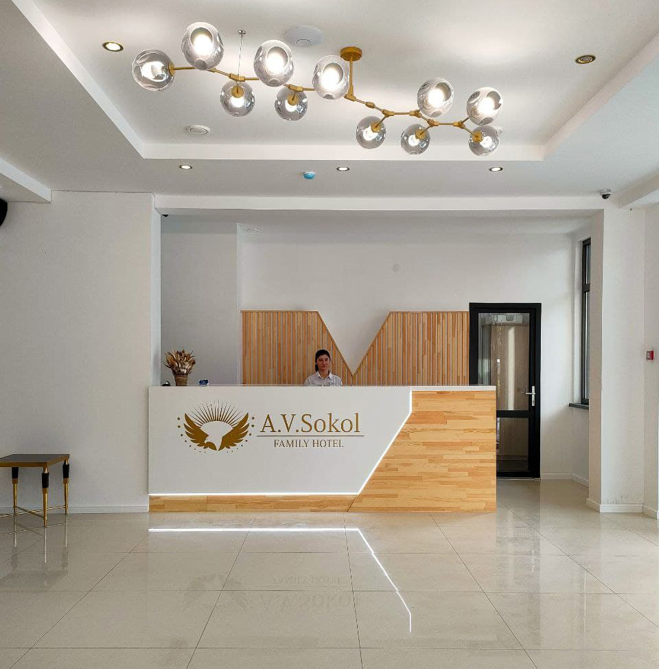 Хочу поделиться отзывом об отдыхе в Абхазии. Отдыхали с 03 июня по 16 июня. Заселили нас сразу, так как отель только что открылся. А так с 14.00. Отель А.В. Сокол (новый)находится рядом с отелем Гранд Абхазия с одной стороны а с другой стороны ряд кафе. Вид с одной стороны на море, с другой стороны на горы ,а прямо на отель Абхазия или на кафе. Где вид на отель, там потише. Где вид на кафе, там музыка играет до 24.00(по местному времени) каждый вечер. Но нам это не мешало, так как мы просто падали и засыпали. С малышами просто надо просить на другую сторону. В номере есть и чайник, и холодильник, и кондиционер, и сейф, и полотенца пляжные, и халаты, и тапочки, и одноразовые зубные щетки, зубная паста, шампуни и гели- это при заселении. Убирали номер каждый день, Меняли постельное через 3-4 дня. В однокомнатном номере у нас была большая двуспальная кровать и кресло кровать для ребенка. На балконе есть два стульчика со столиком и сушка для белья. Полотенцесушитель в ванной комнате электрический( там сушили белье). Влажность на улице. Есть фен, но слабый. Шкаф с вешалками в прихожей. Телевизор. Комфортный номер. В холе стояла гладильная доска и утюг. Территория отеля совсем небольшая. Есть бассейн. Подогревается. Очень было комфортно, когда шел дождик, а мы в бассейне и не холодно совсем. Даже малышки купались в бассейне этом. В ресторане иногда не хватало места, мы просто стали ходить попозже кушать. Кормили вкусно. Изысков нет, обычная еда ,но голодным не останешься . Фруктов было мало. Мы покупали на базаре ягоды, сыр, сырокопченое мясо, сладости, чурчхелу.. Базар где-то минут 15 ходьбы от отеля. На завтрак были каши вида два- три., хлопья, запеканка творожная, омлет, блинчики, оладьи, вареники. Йогурт, кефир, молоко, компот, чай и кофе в пакетиках. На обед супы два-три вида и вторые блюда. На ужин стояли бокалы с вином. Играл саксофон вечером на ужине через два-три дня. Была детская анимация. Это для маленьких . Дети играли. В отеле никто ничего не навязывал. Есть лифт и лестница. Кто как хочет, так поднимался на свой этаж. На пляже свои зонты и шезлонги, переодевалки, душ. Хватало всем. Пляж не огорожен, но ходил там работник и спрашивал кто из отеля. Пляж галечный. Море чистое, только медузы есть. Отдых у нас получился насыщенный. Ездили на экскурсии. От отеля был мне комплимент на день рождение. Приятно. Wi Fi бесплатный на территории отеля и даже на пляже ловил. Пароль при заселении на рецепшине давали. Свои телефоны на границе поставили в режим полета. Общались с родными по вайберу.