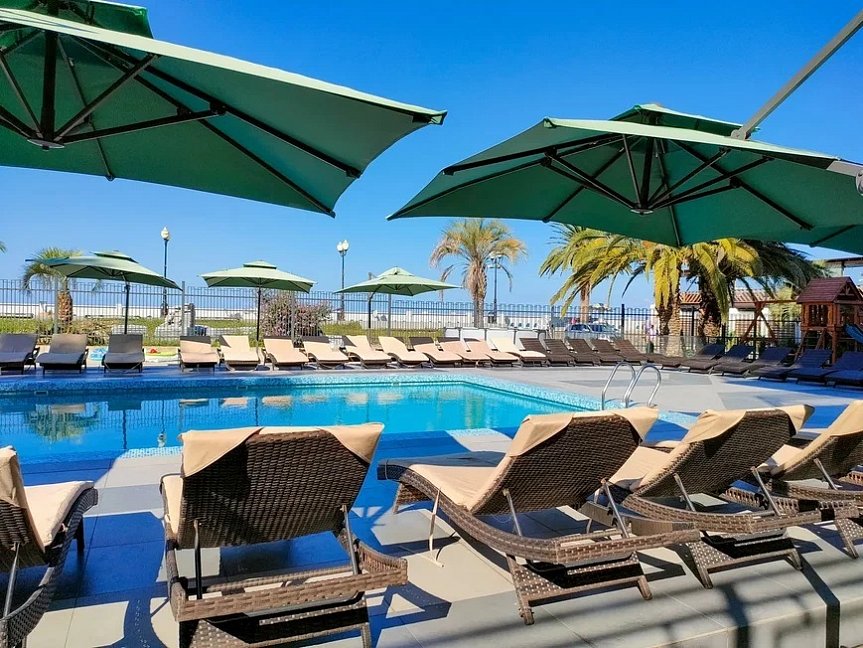 Отдыхаем в отеле с 19 августа 2023 года, отель новый, чистый, уборка ежедневно. Питание обычное, голодным не останешься, но выбора большого нет. Блюда однообразные чередуются, арбузы, дыни, яблоки,слив, черешня из фруктов.
