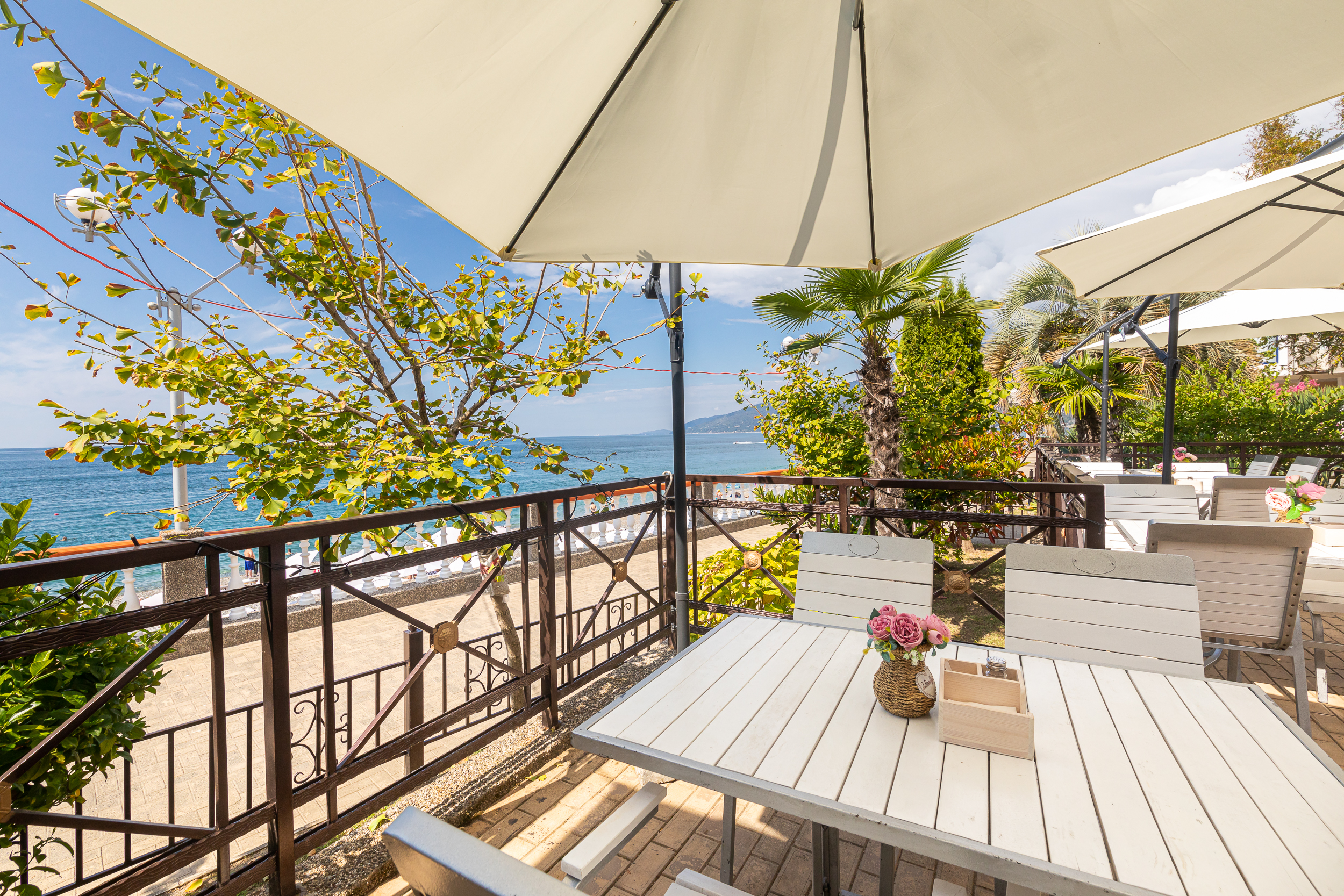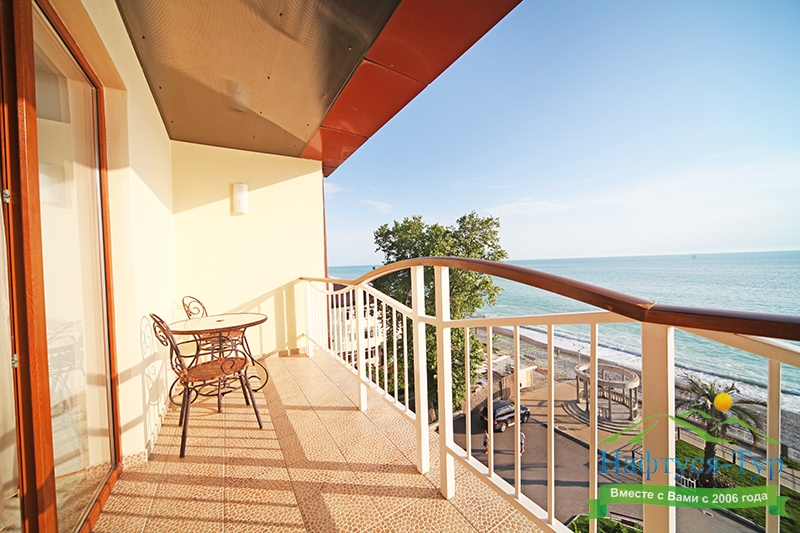 Расположение: Первая линия у моря (20 м до пляжа), 50 м до центра Гагры, 42 км до аэропорта Адлер. Гагра