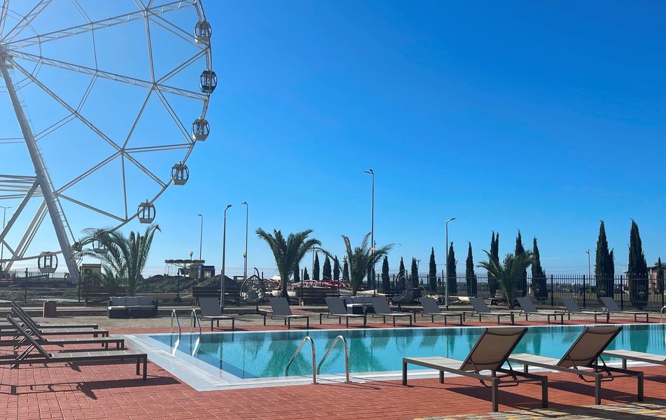 Отель «Гагра Палас» расположился на первой береговой линии в 50 м от пляжа, в 66 км от российско-Абхазская границы.