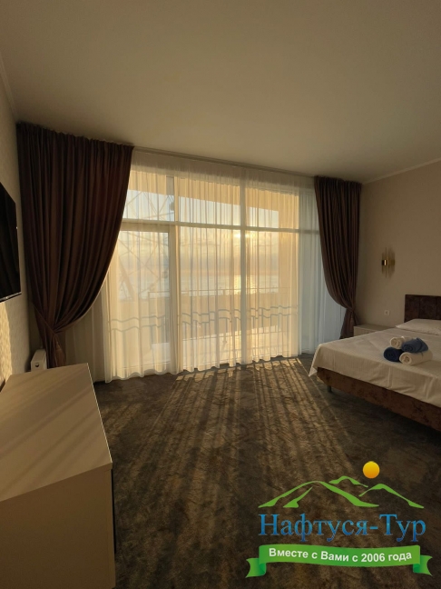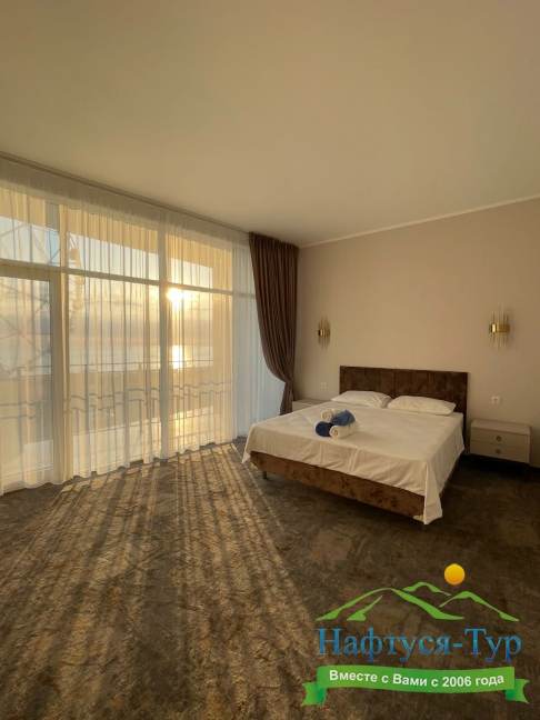 Расположение: Первая линия у моря (50 м до пляжа), 40 км до аэропорта Адлера