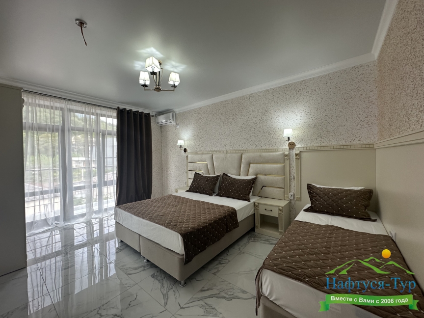 Отдыхали с мужем в Гагре в отеле "Магнолия" в начале июля 2016г. Всё понравилось. Новые отель, в номере всё новое:мебель, холодильник, чайник, фен,сантехника, кондиционер. Всё именно так как и заявлено об отеле.