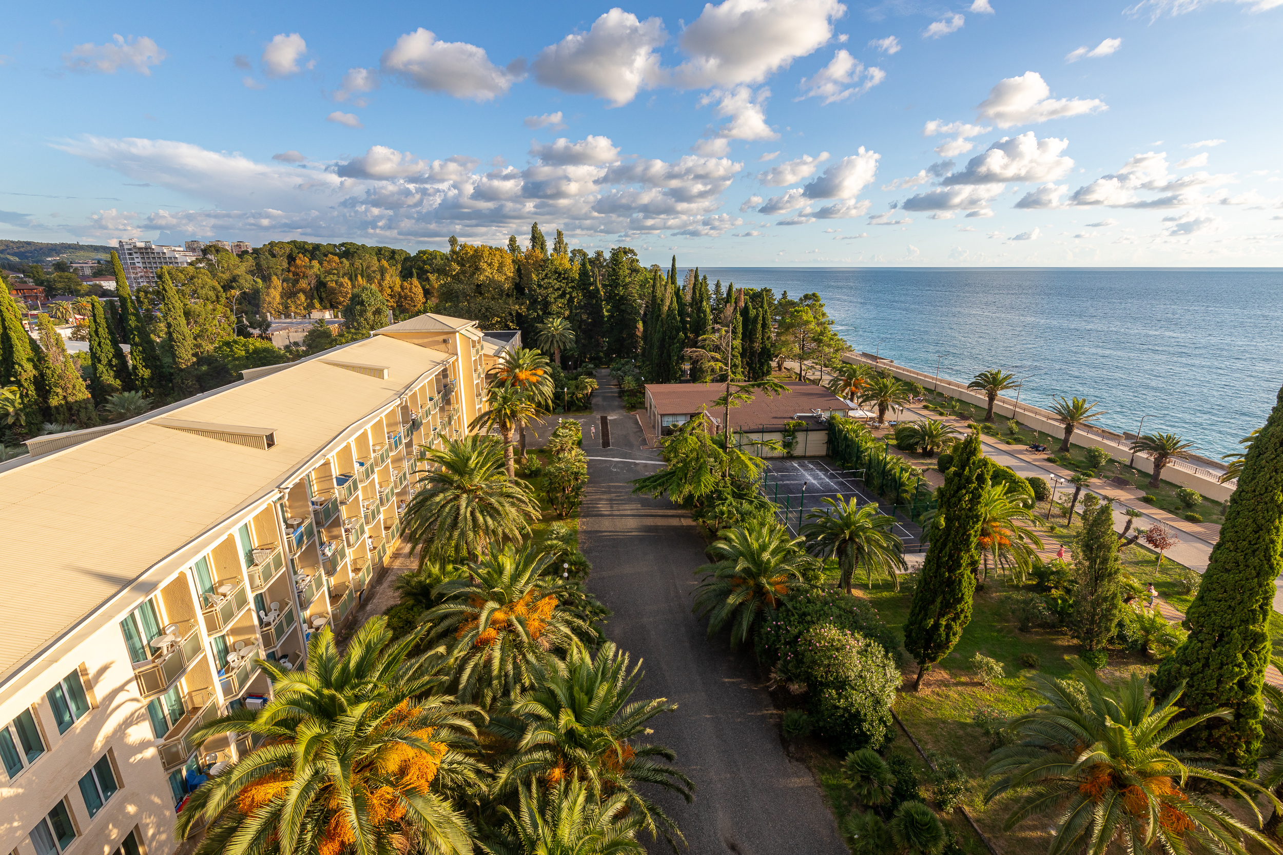 Всего две звезды – не очень много. Хотя пансионат уютный. И всего несколько минут до пляжа и центрального рынка, что тоже важно. Красивая территория с цветами и пальмами. Когда-то этот пансионат славился на весь СССР, как нам рассказывали.