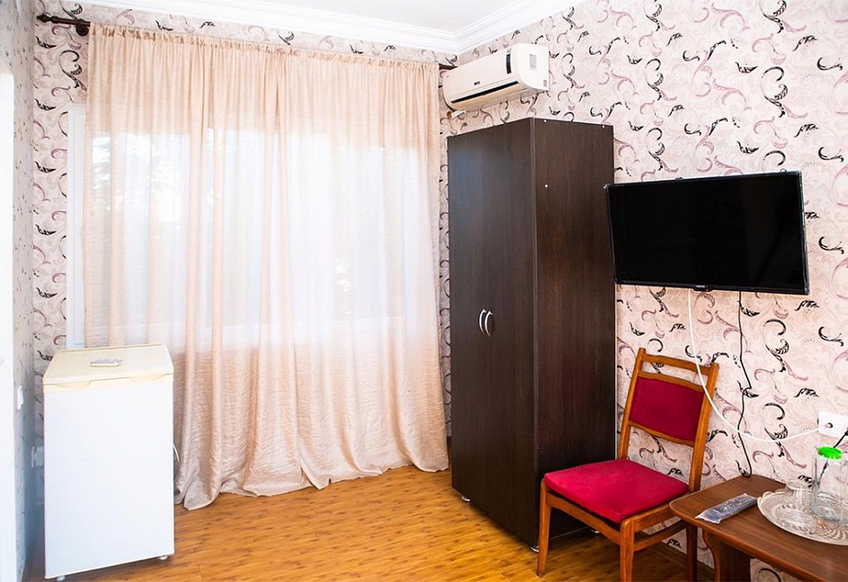 Вернулись с отдыха где-то полгода назад, и я наконец-то собралась написать отзыв. Приехав на поезде и пройдя через границу, мы заселились в номер. Комната обычная, не «страшная». Да, мебель старенькая и обстановка совершенно без изысков, зато все необходимое есть: две кровати, тумбочки, стол, стулья, шкаф, телевизор, холодильник.