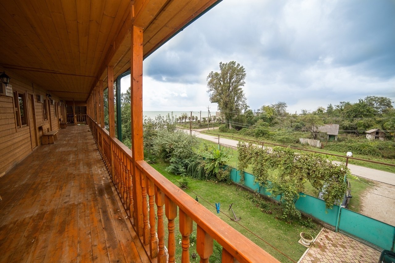Расположение: Первая линия у моря (30 м до пляжа), 80 км до аэропорта Адлер. Гудаута