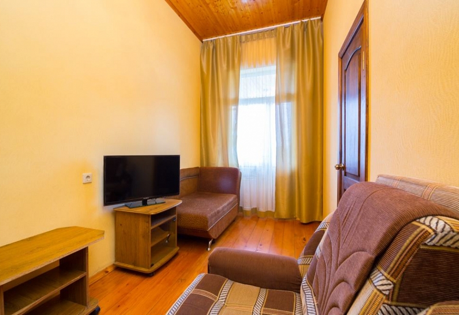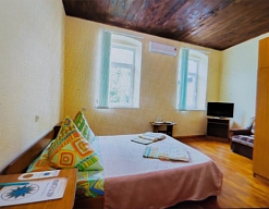 Расположение: Первая линия у моря (20 м до пляжа), 100 м до центра, 100 км до аэропорта Адлер