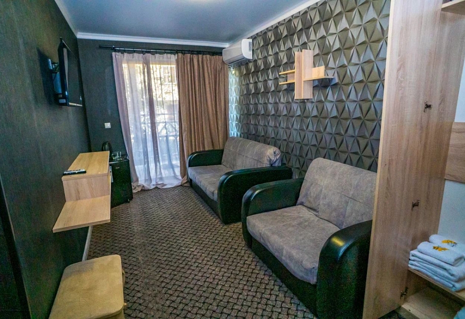 Расположение: 300 м до пляжа, 400 м до центра, 90 км до аэропорта Адлер