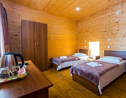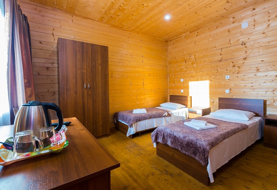 Проживали в этом отеле в начале сентября. Огромный плюс: близко к морю. Недостатки: в номере ни разу не убирали,полотенца ни разу не меняли (как было заявлено).Может,это и не приципиально,но за услуги оплачено. В близстоящей столовке дороговато,и порции не такие уж и большие. Сравниваю со столовыми в Гагре и Пицунде. Ну,если смотреть на сам отель и территорию,то всё здОрово,красиво.