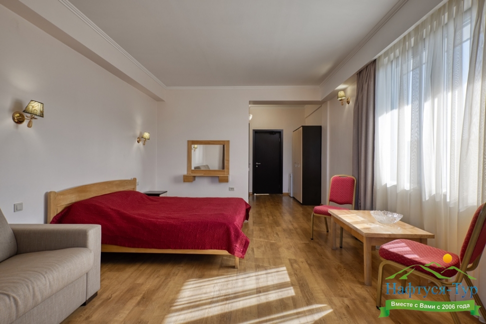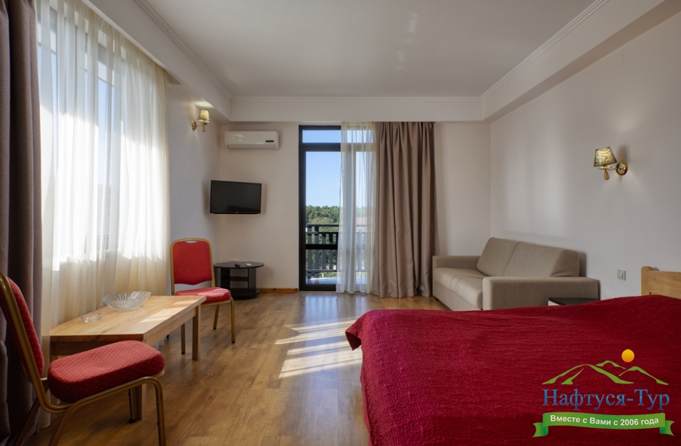 Впечатление от отдыха довольно хорошее.Номера просторные и комфортные. Горничная производит уборку каждый день.Девочки на рецепции заслуживают особой похвалы.Питание 3-х разовое с блюдами кавказкой,русской и европейской кухни.