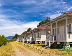 Территория большая, вся в зелени, расположена недалеко от моря. Наш домик располагался в саду, номер очень понравился. Убирались в номере каждый день, на 5 день меняли белье. Персонал весь доброжелательный, если возникли вопросы помогут. В столовой кормили вкусно и сытно, была выпечка, фрукты. Мне понравилось.