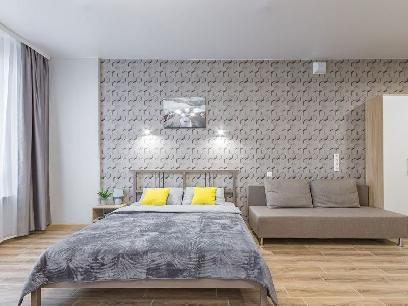 зеркало, кровать двуспальная, кровать односпальная, прикроватные тумбочки, стол, шкаф