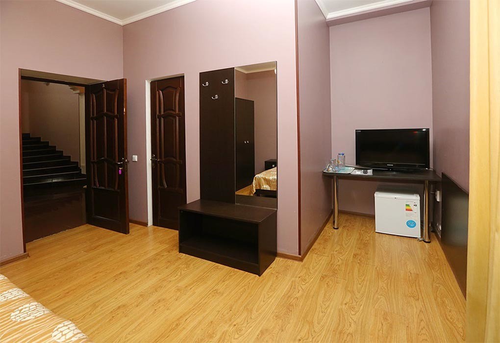 Расположение: Первая линия у моря (50 м до пляжа), 500 м до центра, 120 км до аэропорта Адлер