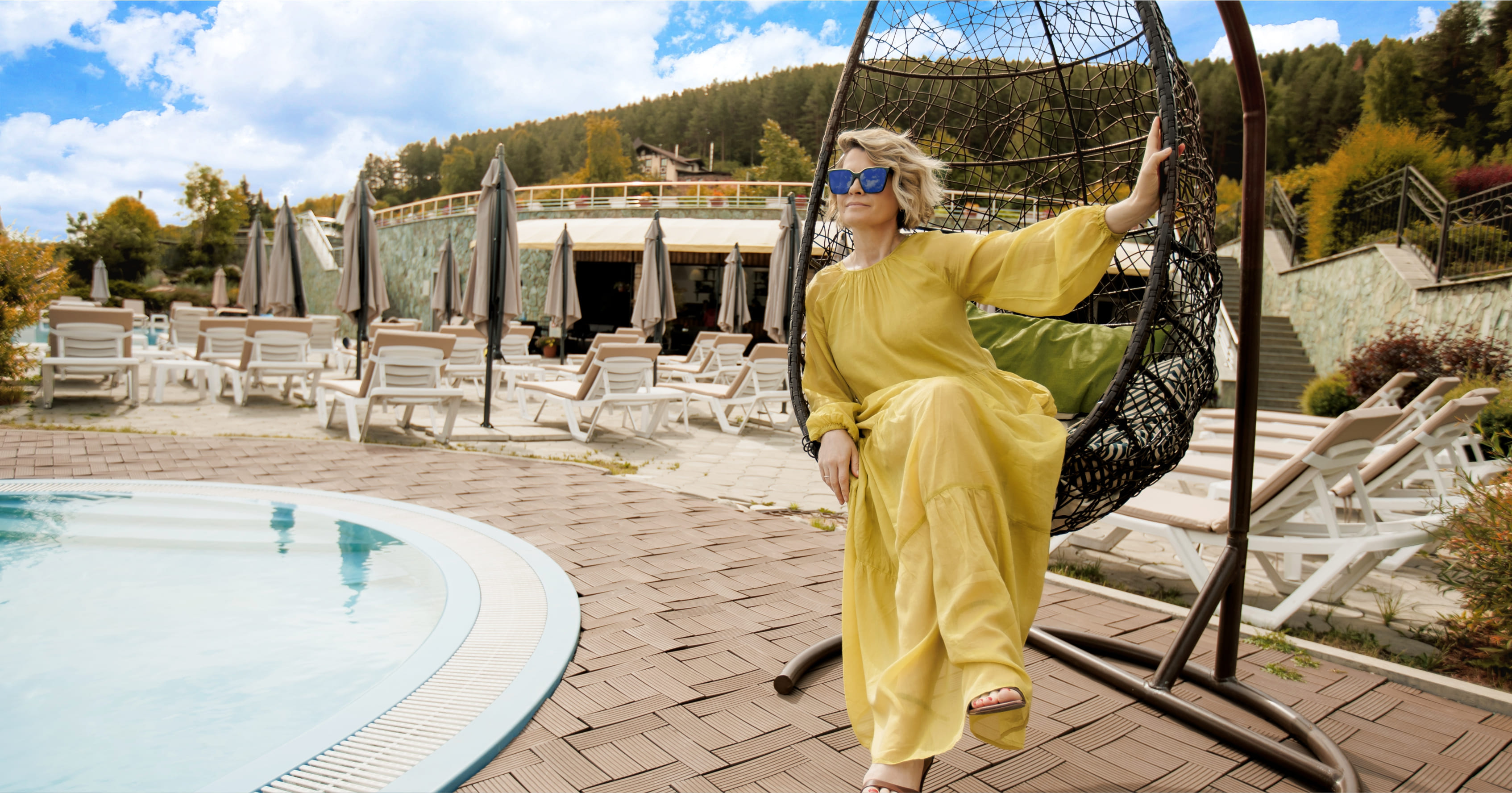 Он находится в отдалении от остальных комплексов, находящихся на курорте, практически в сосновом лесу.