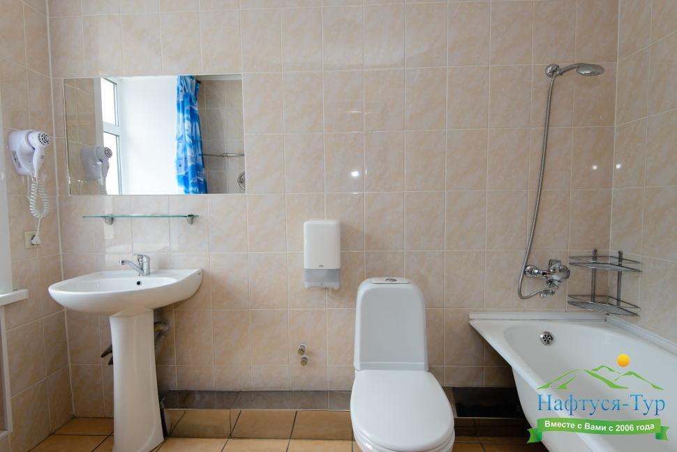 с ванной, туалетные принадлежности, фен