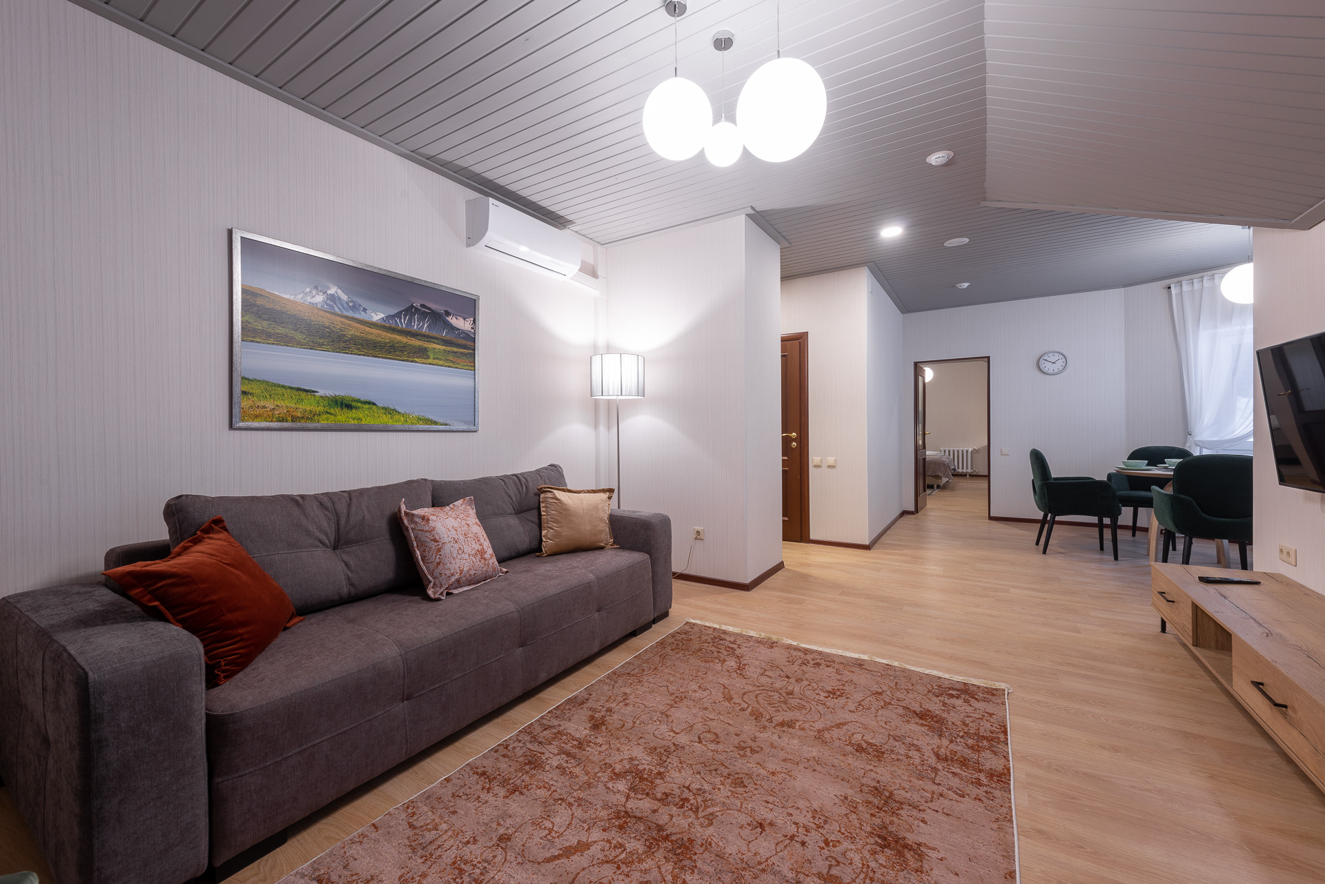 гладильная доска, кондиционер, набор посуды, сейф, телевизор ЖК, телефон, холодильник, электрочайник