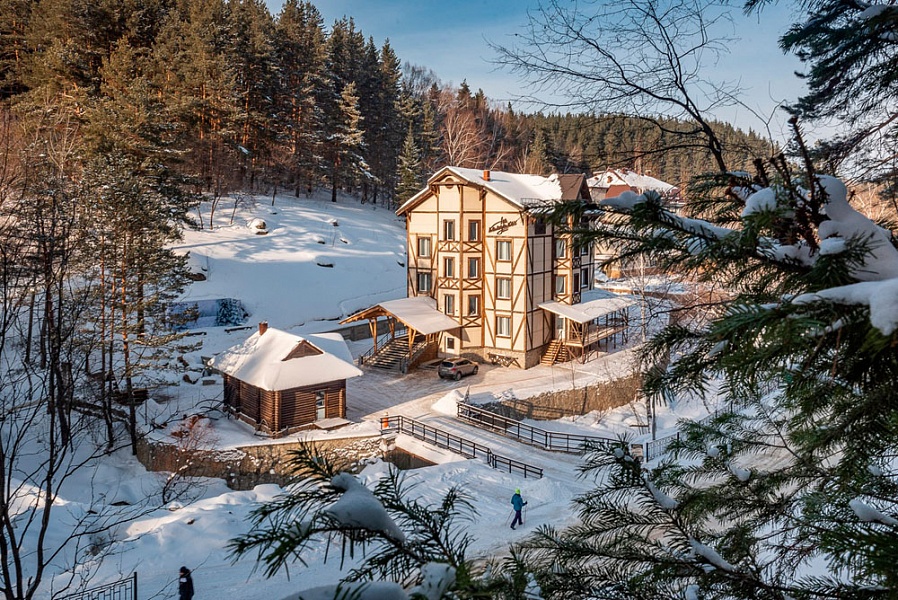 Поездом до ж/д вокзала г. Барнаула, г. Бийска, далее с автовокзала автобусом до автовокзала г. Белокурихи, далее на маршрутке №1, 2, 5, 6 до остановки «Канатно-кресельная дорога», далее пройти 230 м до отеля.