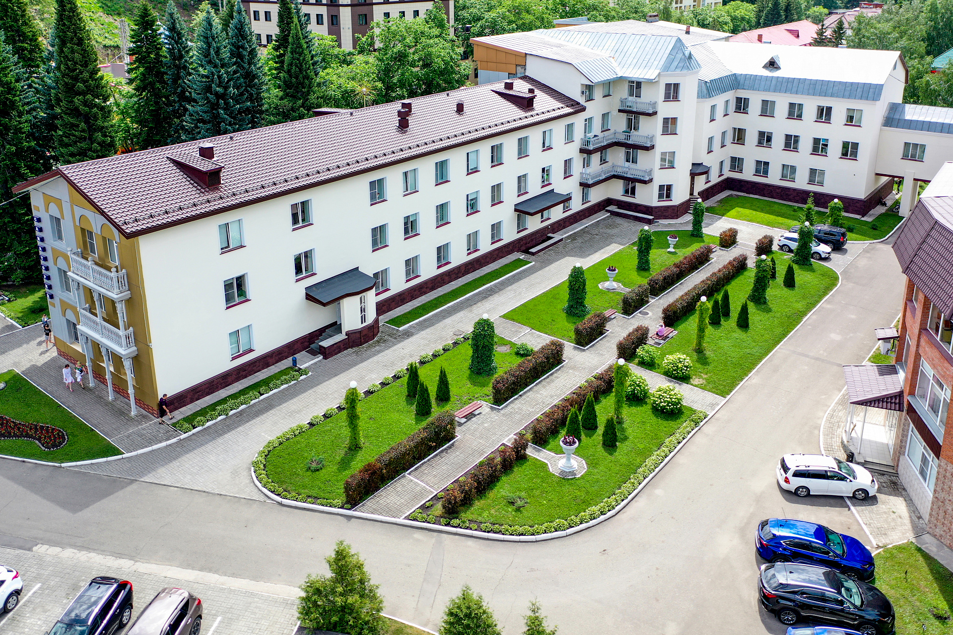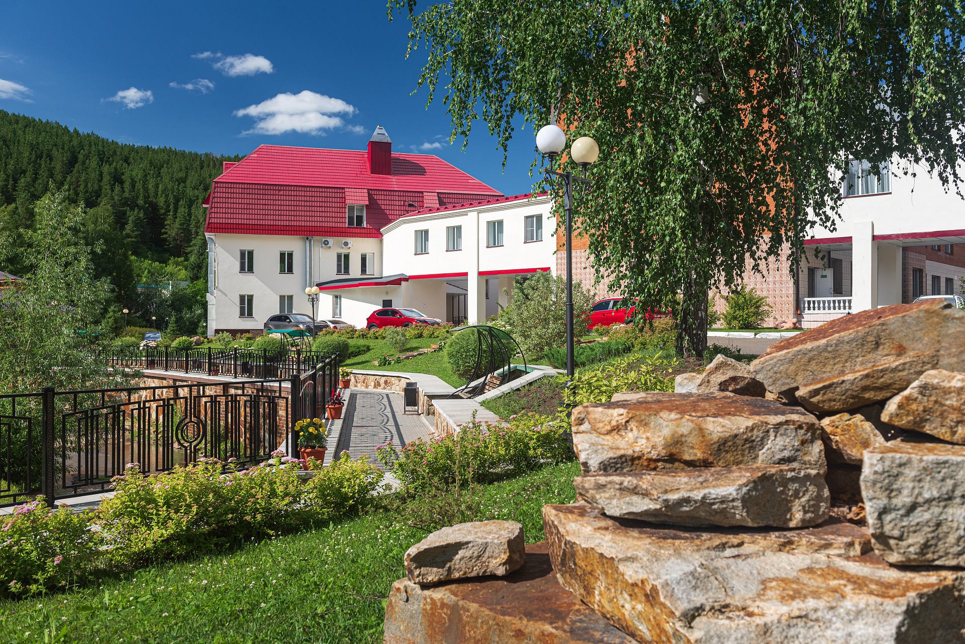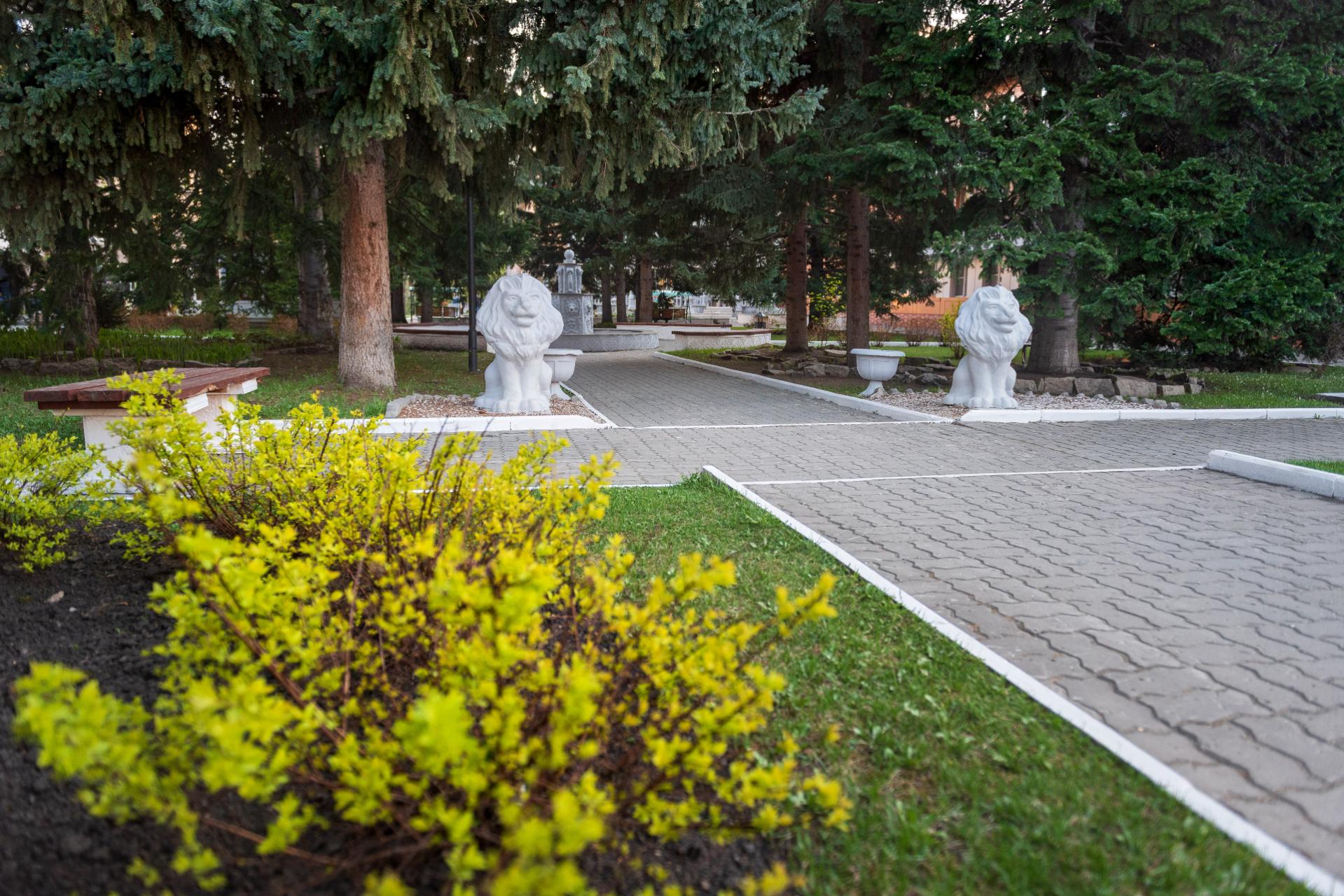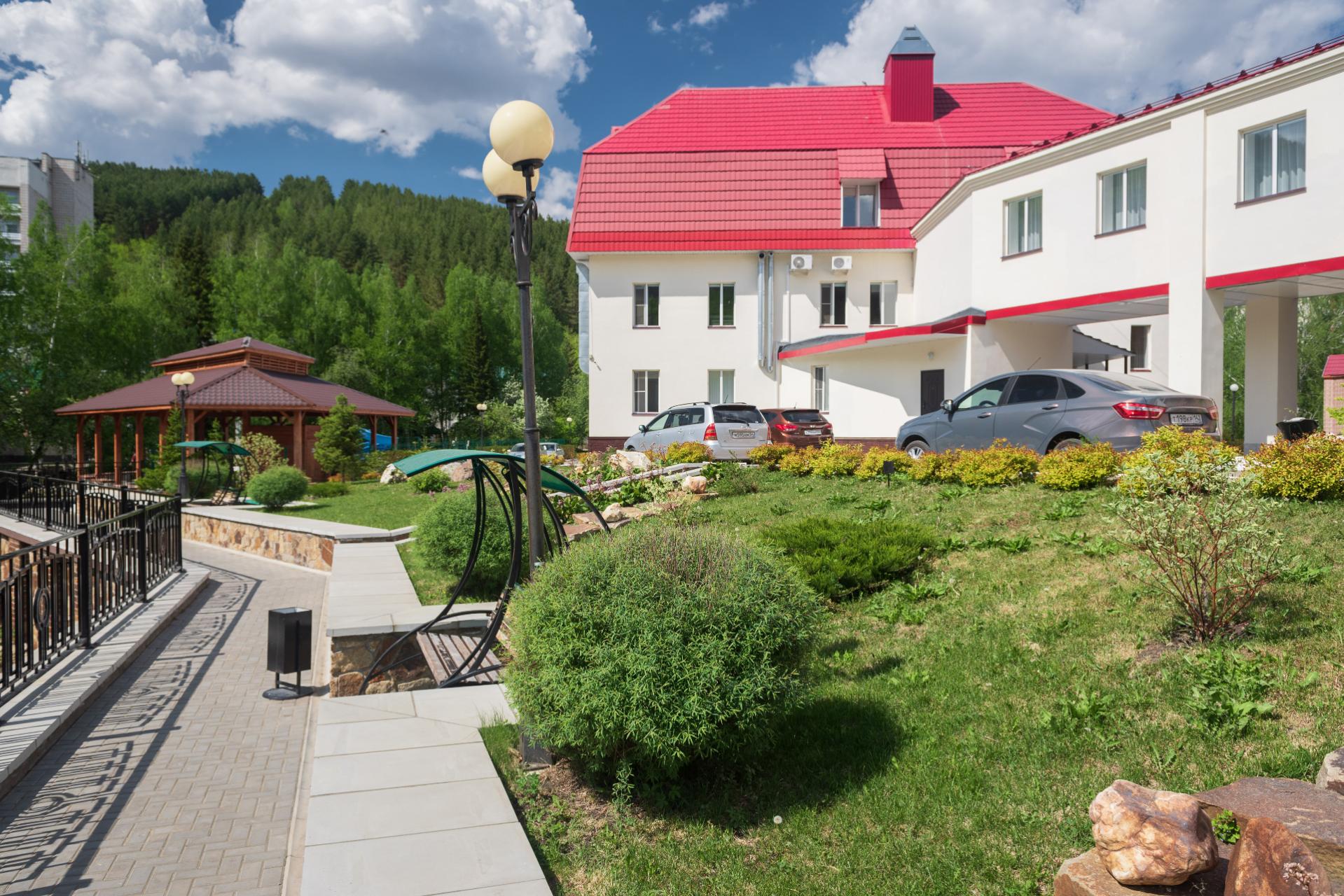 - большая, благоустроенная территория с собственной парковой зоной