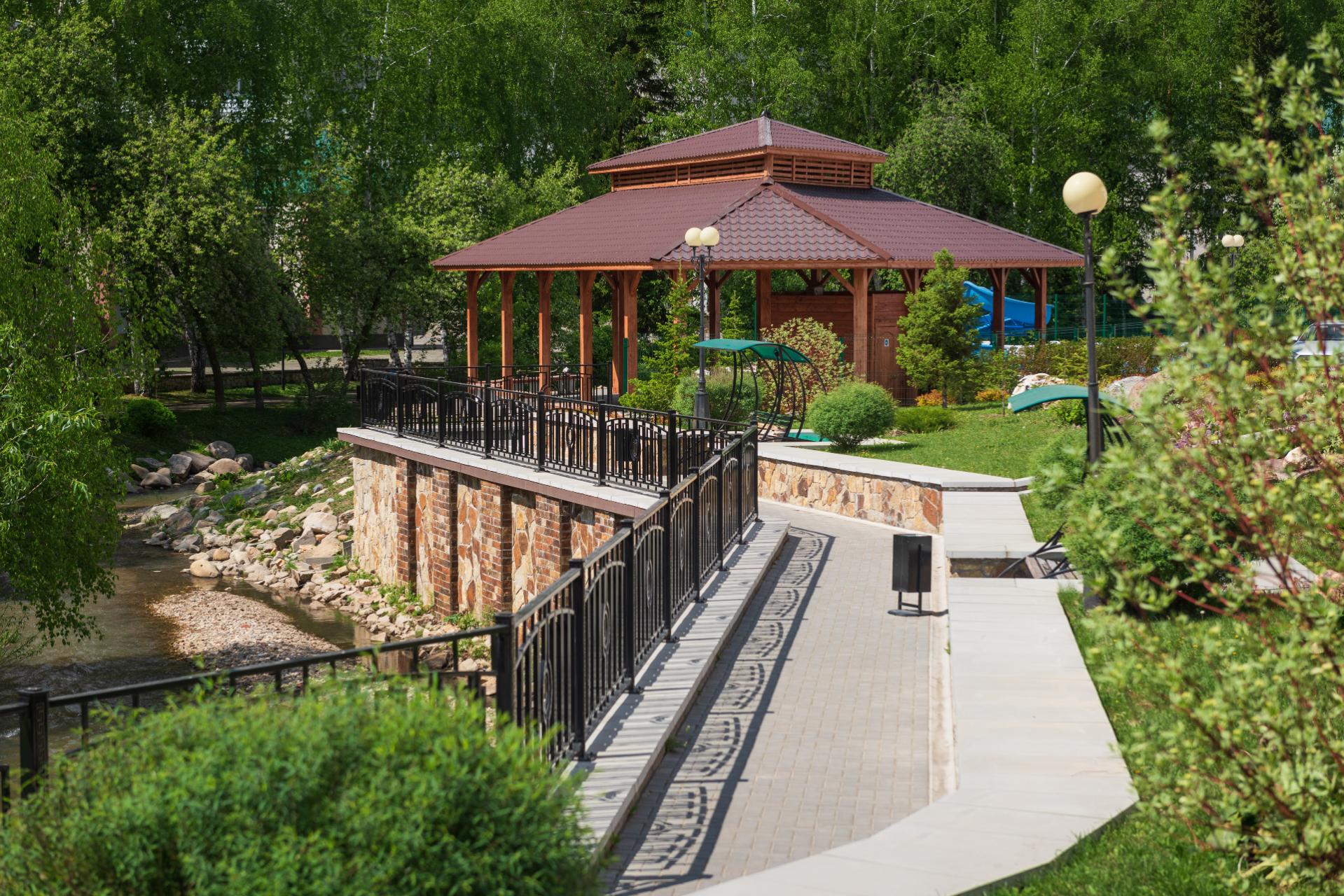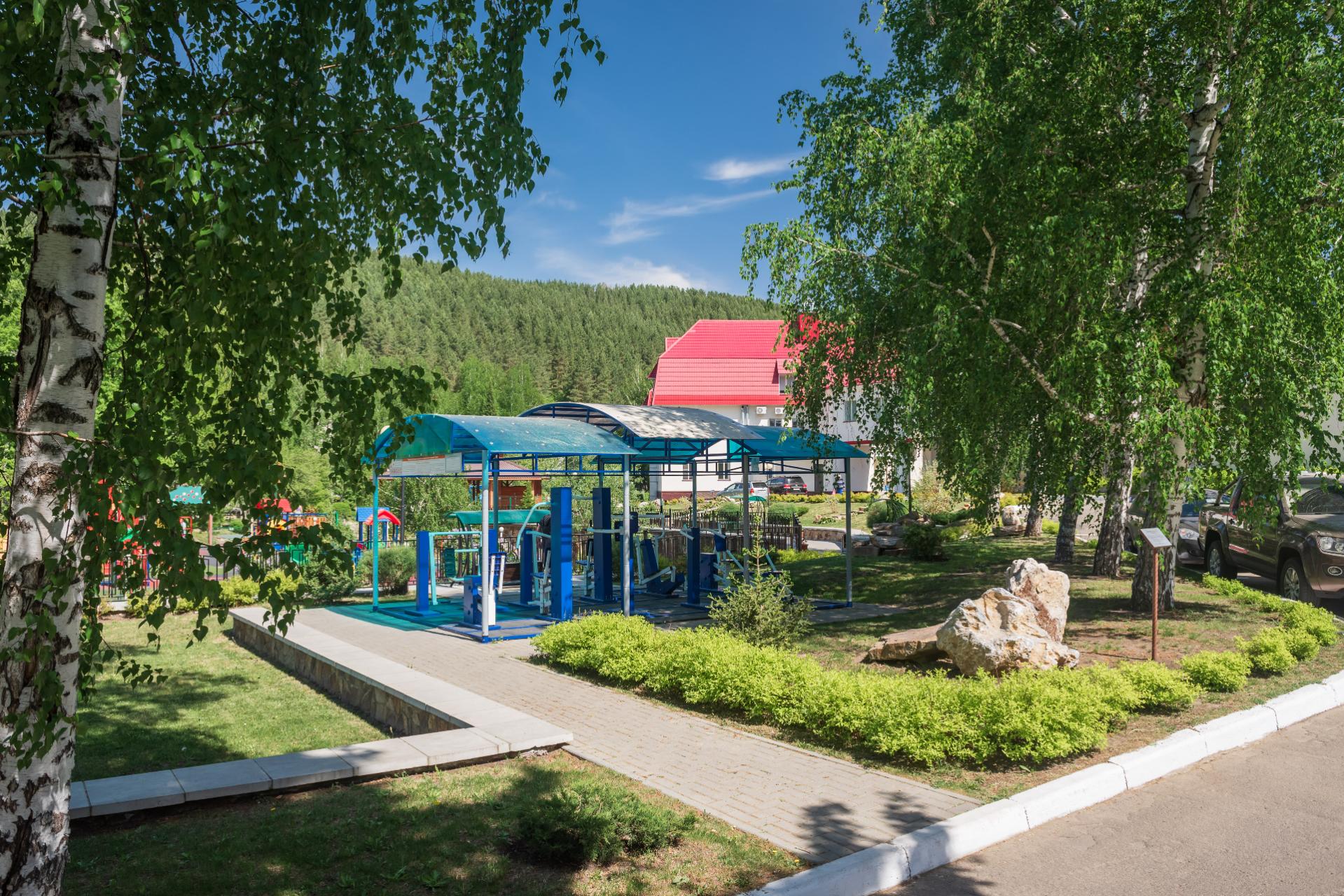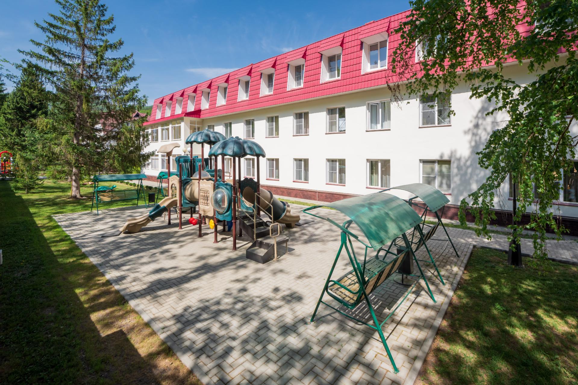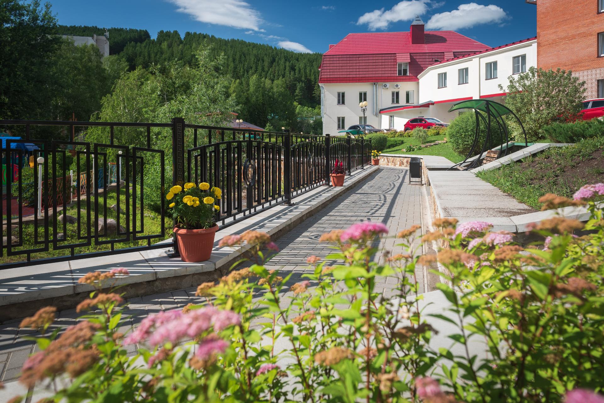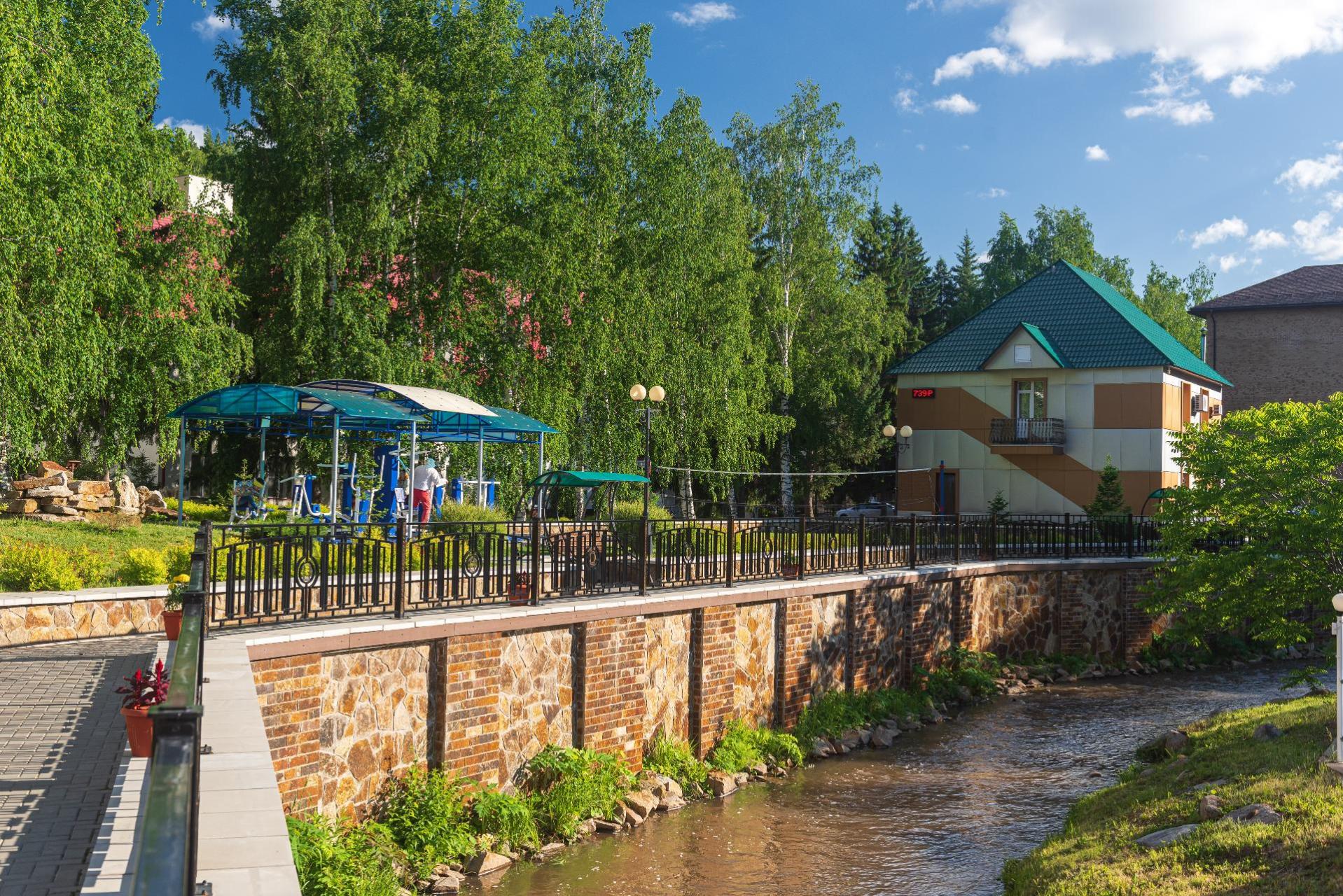 Территория санатория "Центросоюза" в Белокурихе прекрасно благоустроена: здесь можно прогуляться по живописным тропинкам, посетить спортивные и детские площадки, отдохнуть у воды. Также в распоряжении гостей работает ресторан с великолепной кухней, где подают блюда местной и европейской кулинарной традиции.