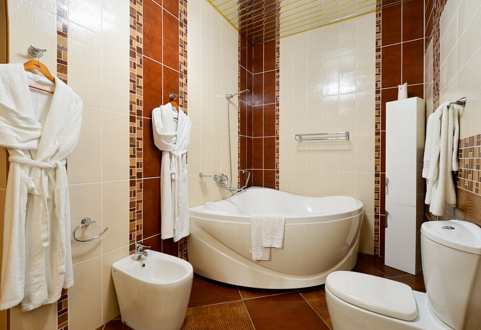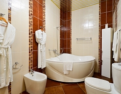 уютной спальни и санузла с ванной-джакузи