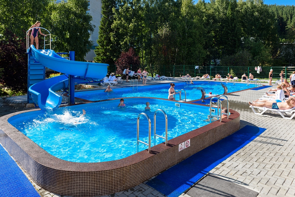 Одновременно были закрыты на реконструкцию оба бассейна, и открытый и в помещении. При бронировании путёвок данная информация не была доведена ни через сайт санатория ни при телефонном общении