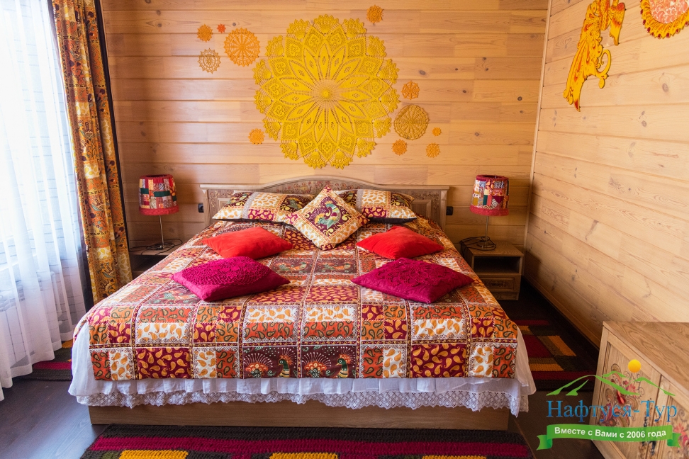 Оригинальное оформление, незабываемый интерьер, внутреннее убранство в стиле Сибирской Масленицы органично сочетаются с высоким уровнем комфорта и сервиса. Размещение происходит в комфортабельных номерах деревянных одноэтажных корпусов, общая вместимость которых составляет 28 мест.