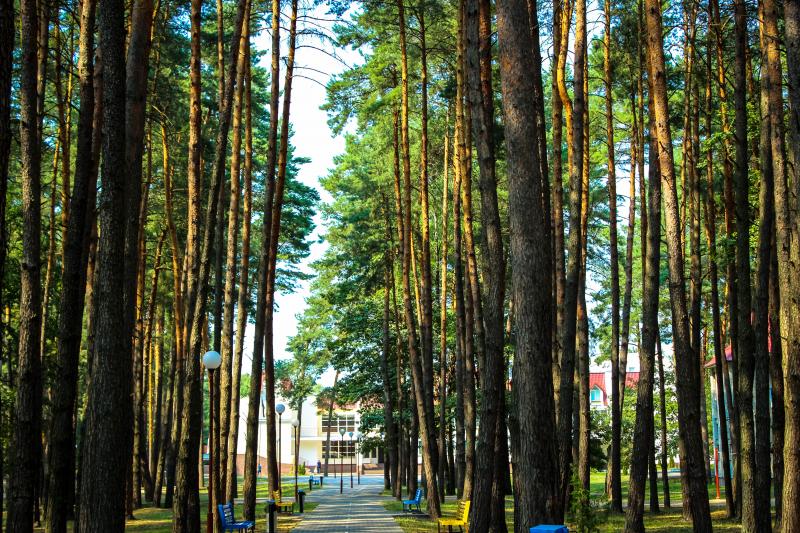 - расположен в живописном сосновом бору площадью 8,5 га