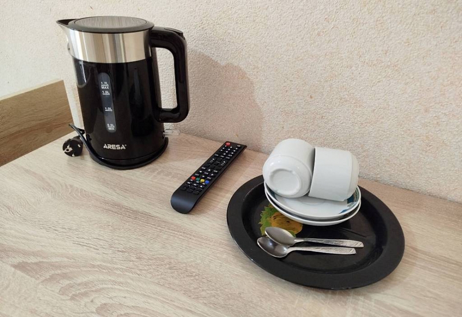 гладильная доска, набор посуды, телевизор ЖК, утюг, холодильник, электрочайник