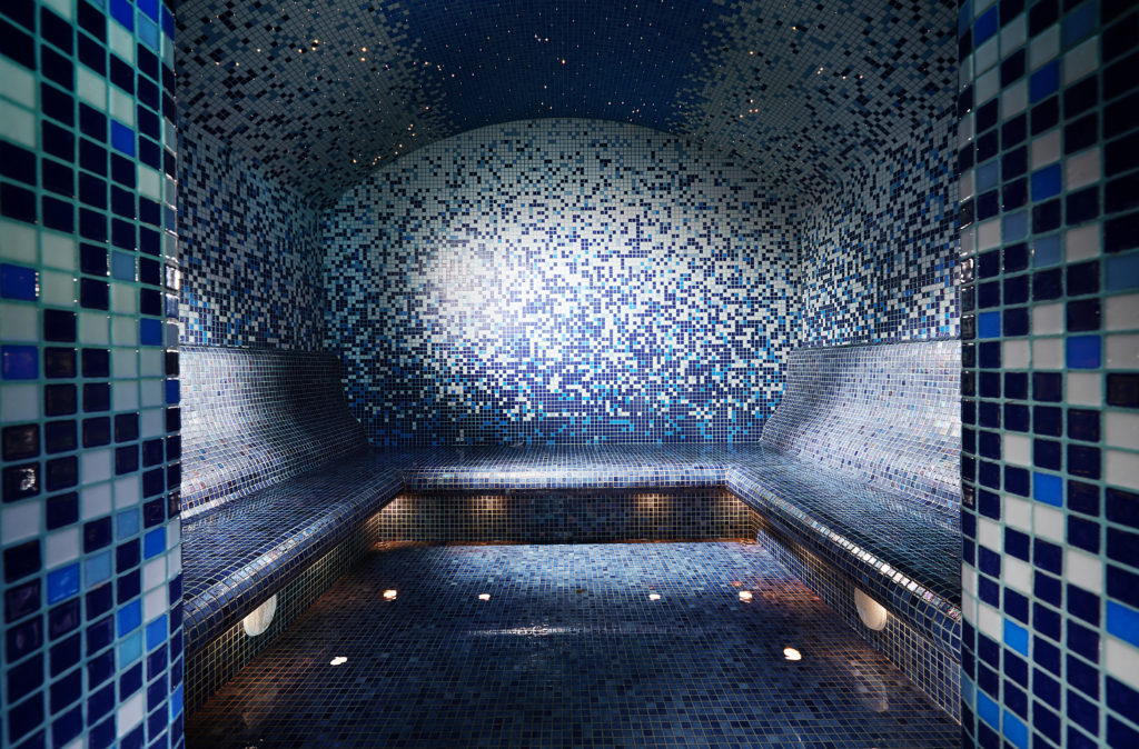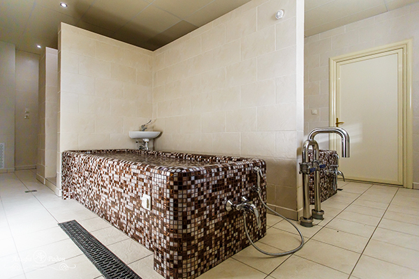 Помимо бассейна в комплекс входят: джакузи, зона отдыха с шезлонгами и фитобаром, несколько видов бань (сауна, хамам), душ впечатлений, ледогенератор, контрастные ванны.