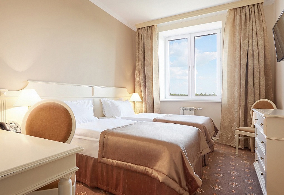 кровати односпальные /одна двуспальная кровать, прикроватные тумбочки, стол, стулья, шкаф