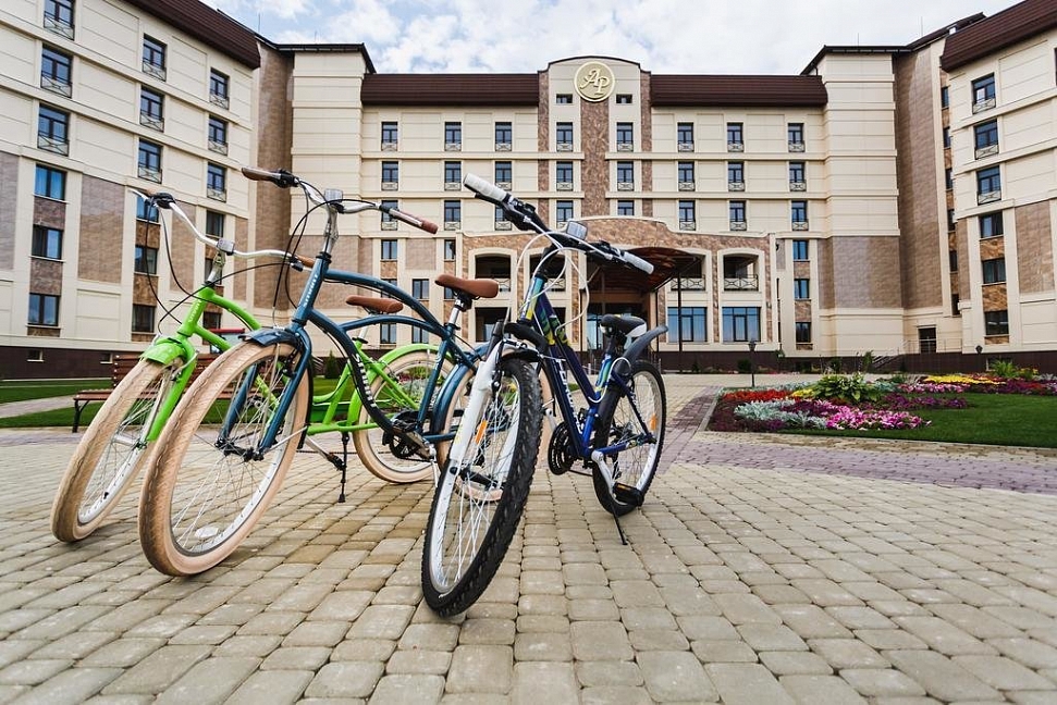 В комплекс спортивной инфраструктуры санатория «Альфа Радон» входят бассейн, тренажерный зал, пункты проката спортинвентаря, открытые игровые площадки на территории.