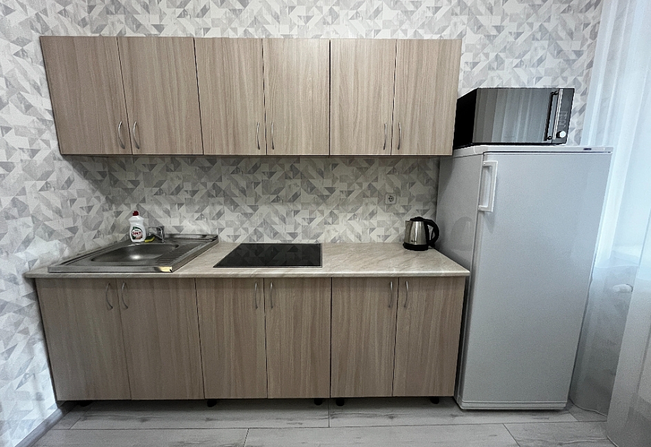 микроволновая печь, набор посуды, плита электрическая, телевизор, холодильник, чайный набор посуды, электрочайник