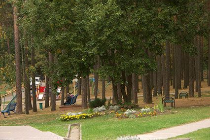 - расположен в живописном сосновом бору