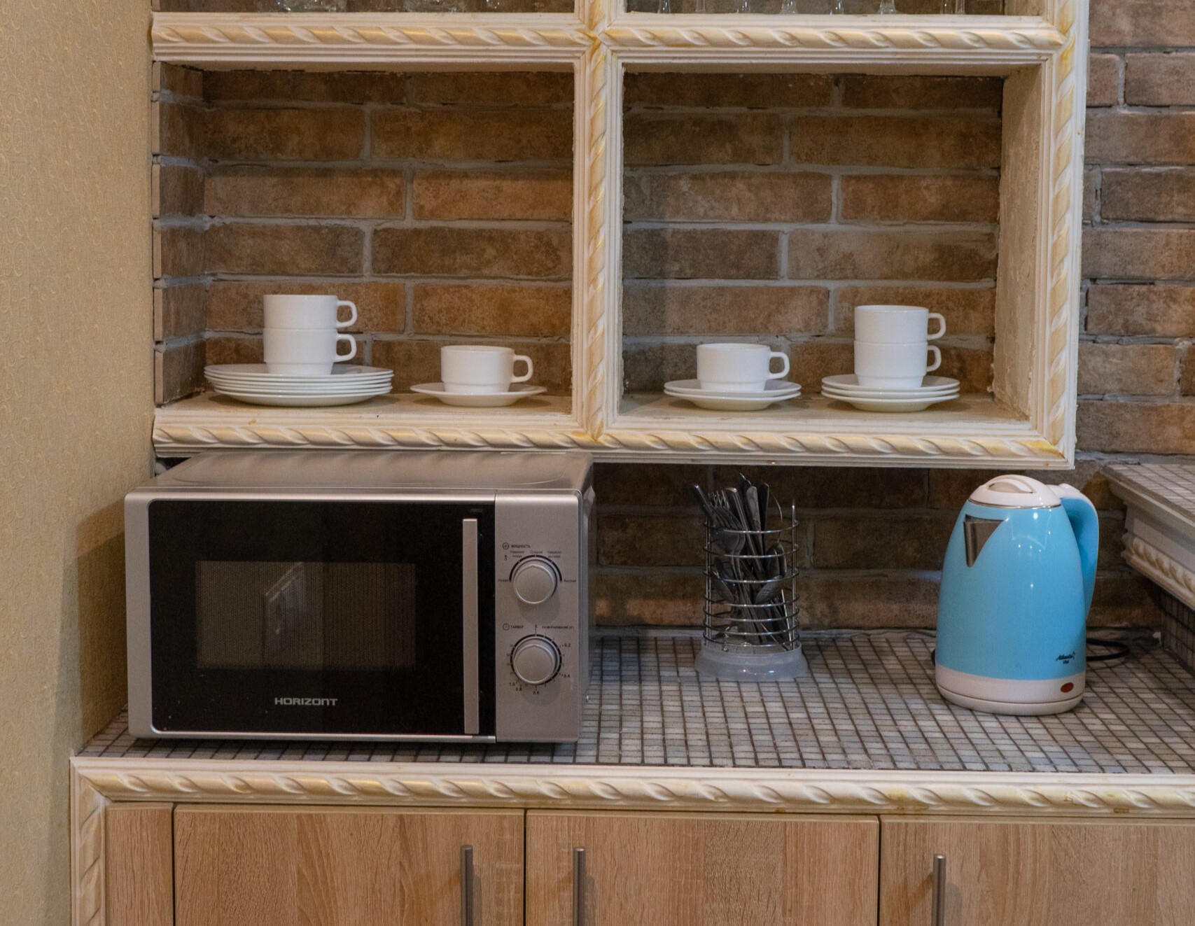 мини-холодильник, набор посуды, телевизор