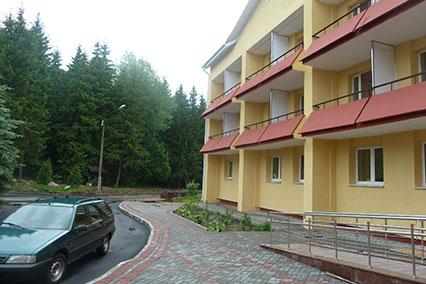 - расположен в живописном месте в лесном массиве на берегу Заславского водохранилища