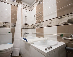 с душевой кабиной, фен, халат