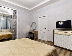 зеркало, кровать двуспальная, набор мягкой мебели, прикроватные тумбочки, столик туалетный, стулья, тумба, тумба под телевизор, шкаф, шкаф для посуды