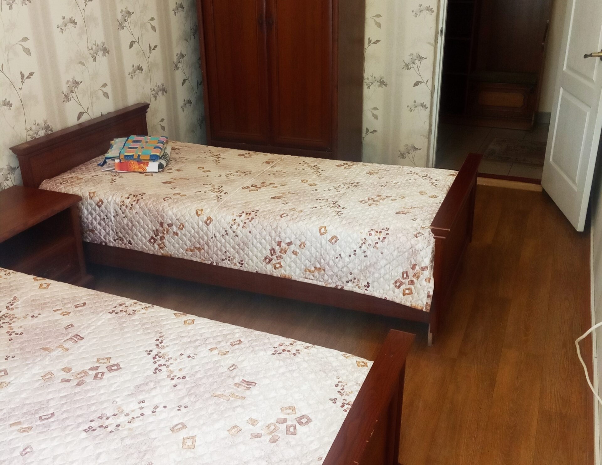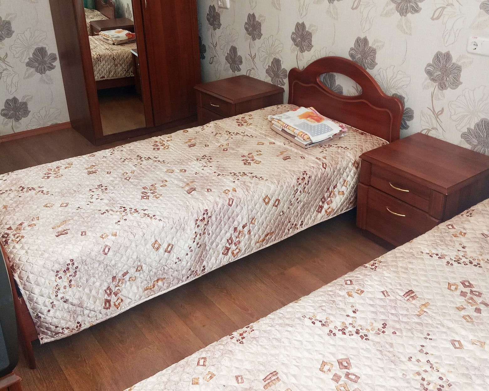 диван раскладной, зеркало, кровать двуспальная/ две полутороспальные кровати, прикроватные тумбочки, стол, стулья, шкаф