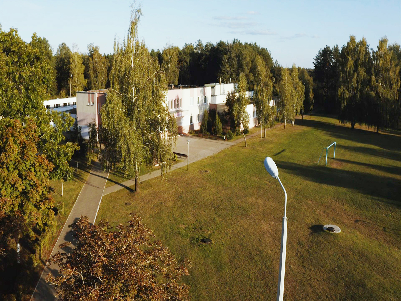 На территории есть крытый бассейн, сауна, тренажёрный зал, спортивные площадки, зоны отдыха и прогулочные маршруты в лесу. Также организуются культурные мероприятия, экскурсии и разнообразный досуг для гостей.