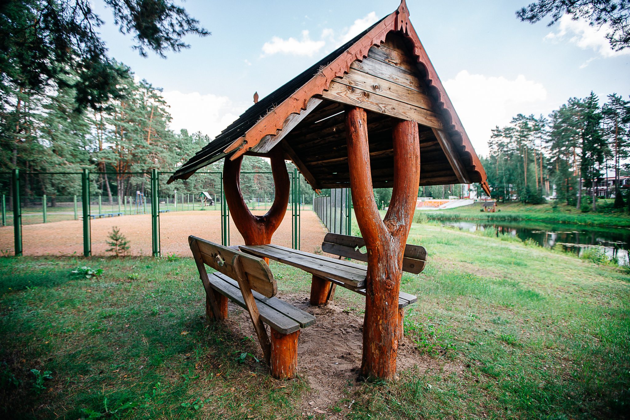 Место расположения санатория в сосновом бору на берегу реки Вилия и естественного водоема, питаемого родниками, а также значительное удаление от промышленных предприятий, автомобильных и железнодорожных трасс определяет щадящее-тренирующее воздействие климатических условий на здоровье отдыхающих.