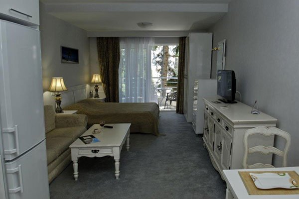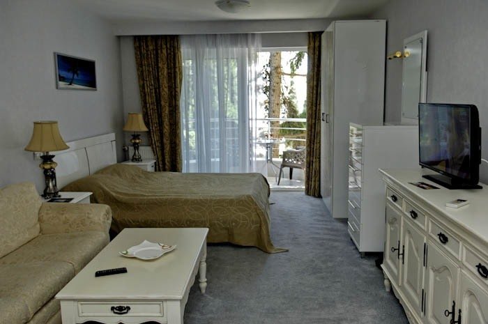 Отдыхали с друзьями с 21.06.15 - 5 дней. Нам всем очень понравилось, одна пара даже продлилась еще на несколько дней. Очень приличный отель. Твердая 4 да еще бы плюс поставила. Не хуже чем в захудалой 5 звездочной Турции, только здесь все родное. И номера чистые и новые, и вид с любой стороны прекрасный, хоть на море хоть на горы. Территория красивая и большая.