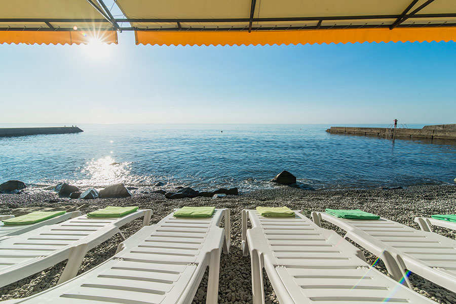 - собственный просторный галечный пляж
