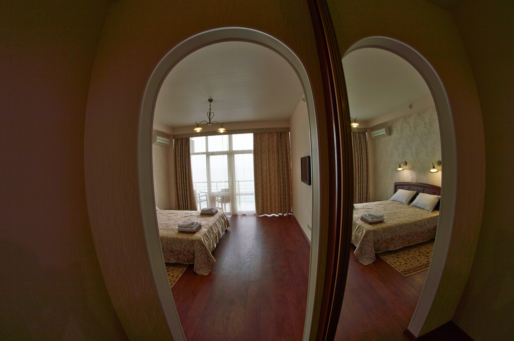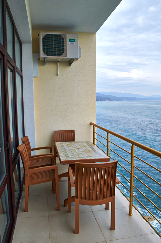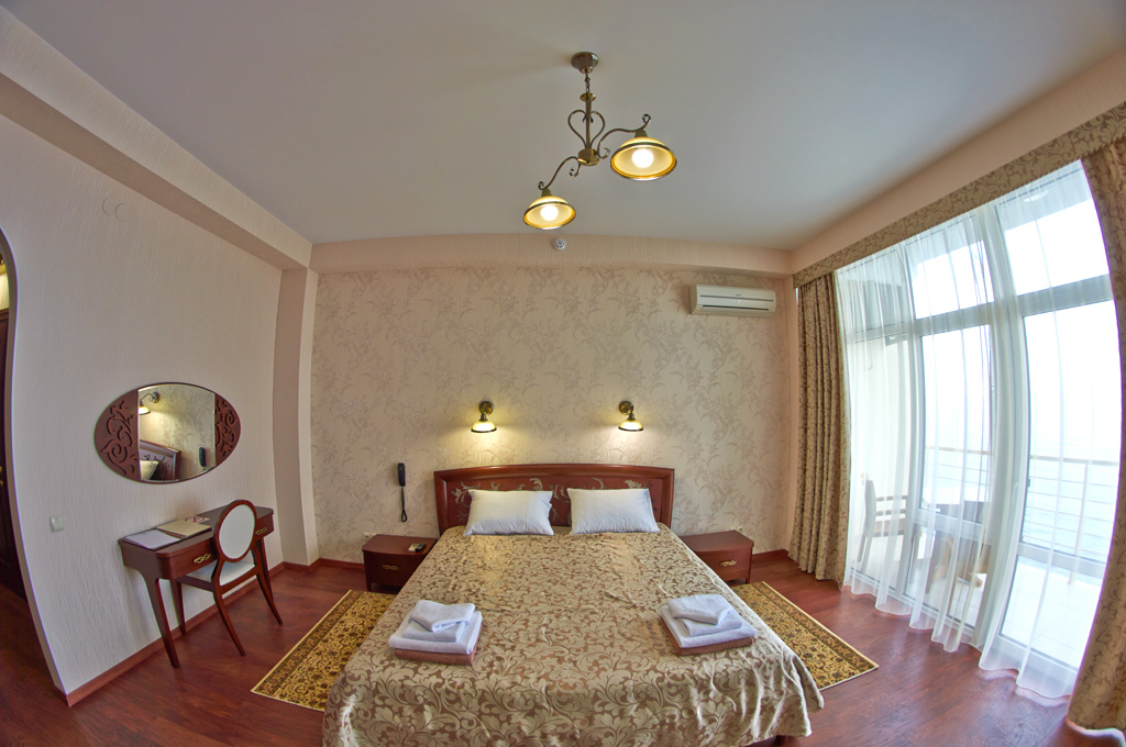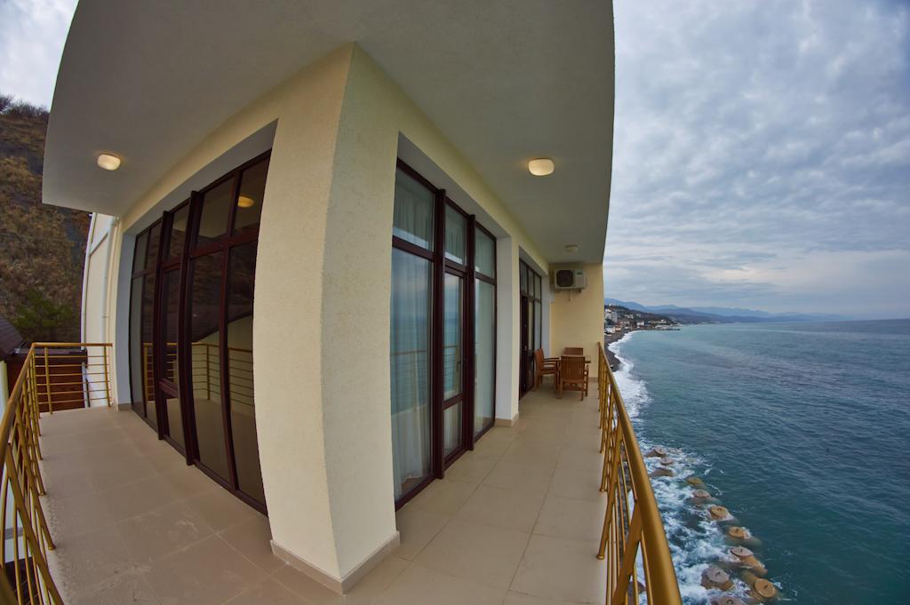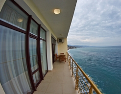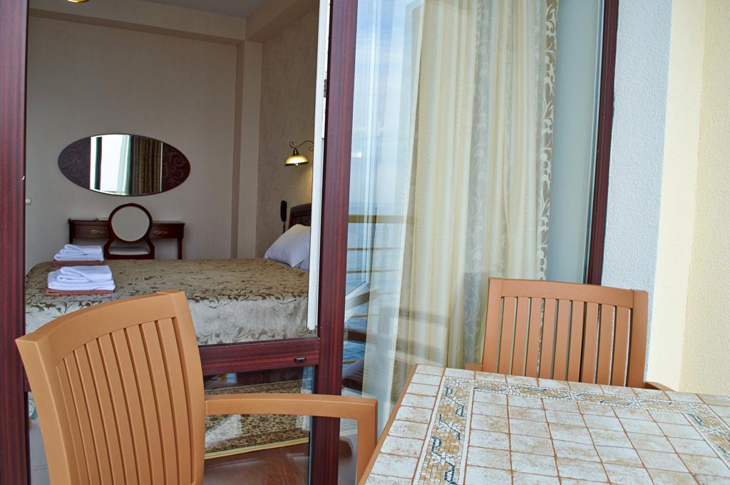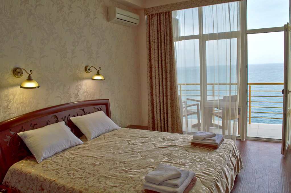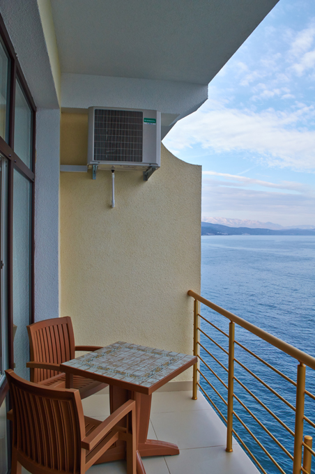 Хороший отель! Вид классный, вечером на балконе фрукты и вино, романтика! Нет детей что не в каждом отеле поэтому тишина и спокойствие, кому нужен шум и кураж такси и через 5 минут центр Алушты.