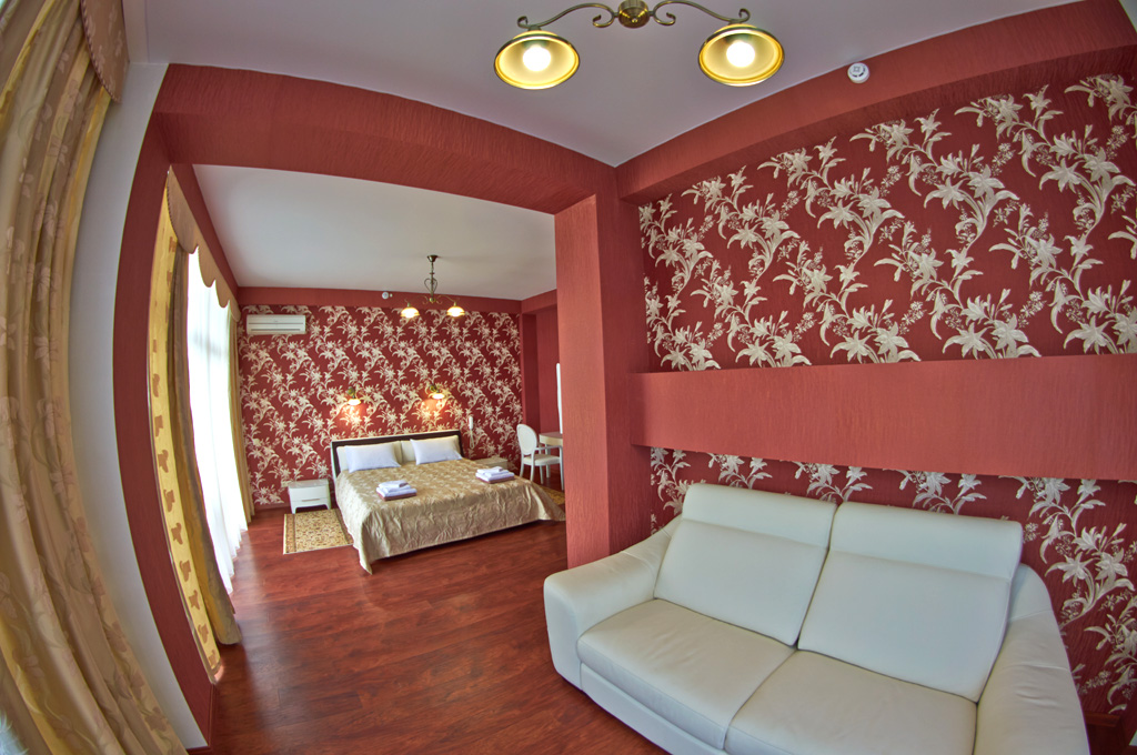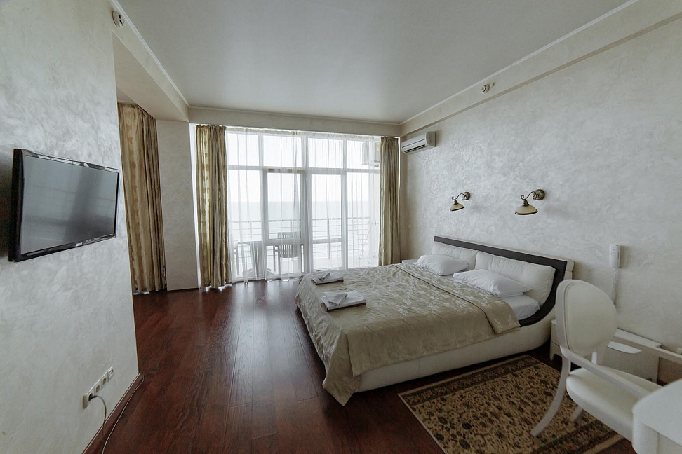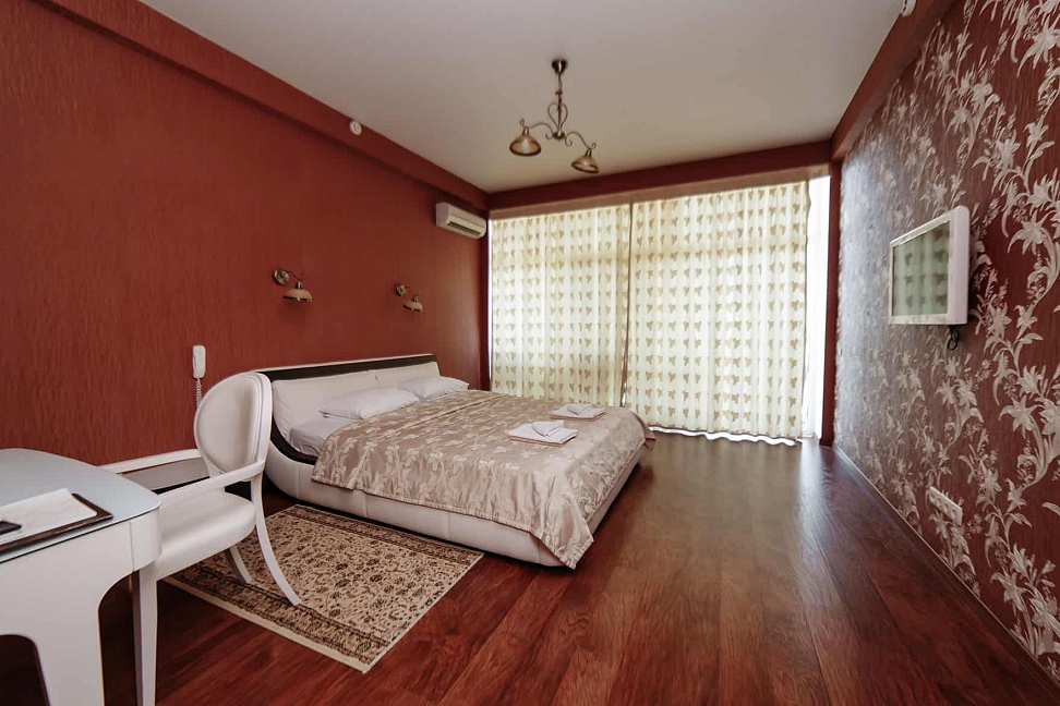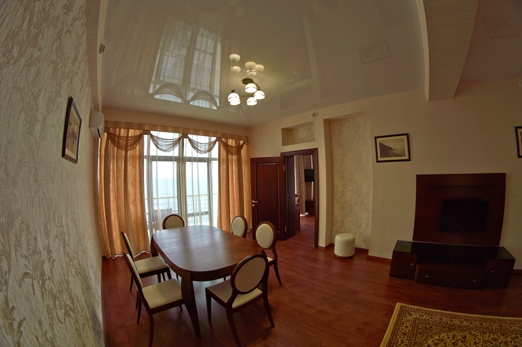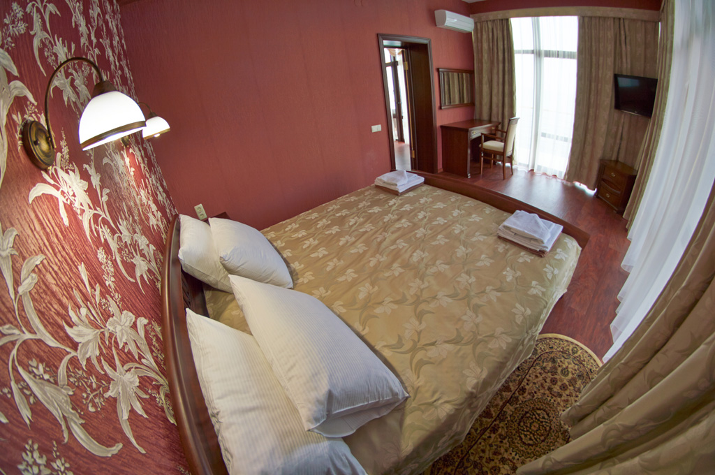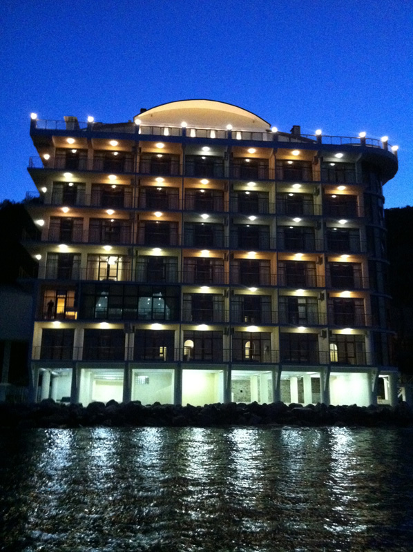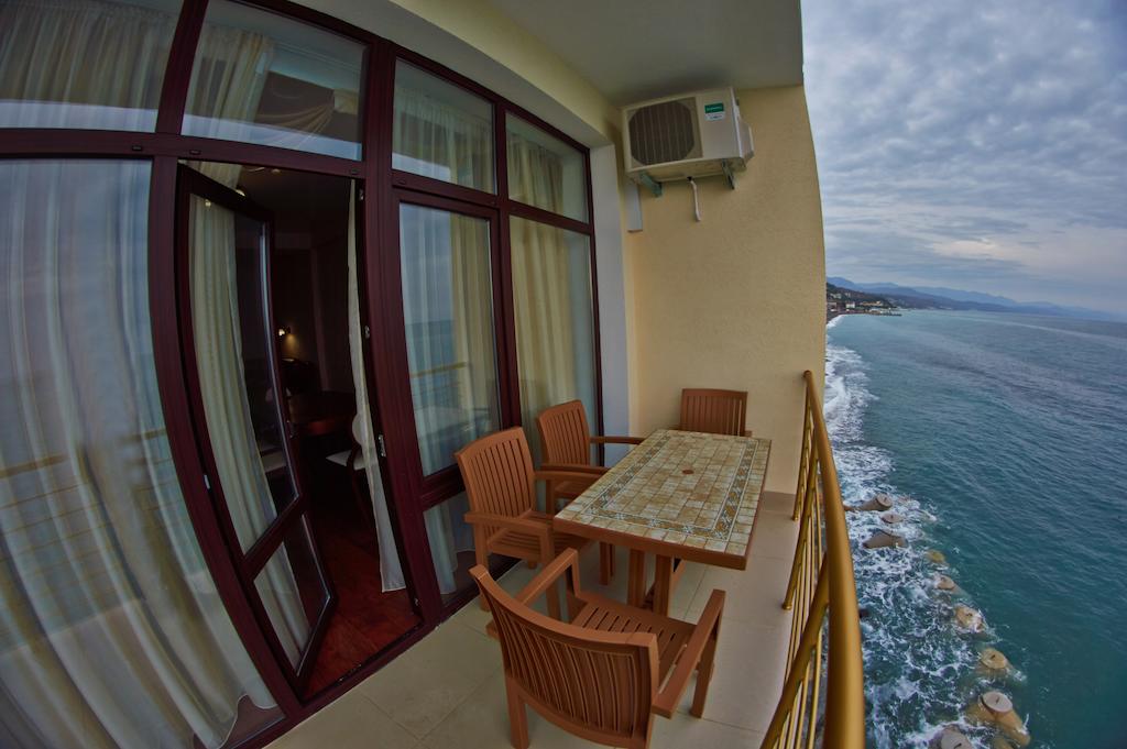Хороший отель! Вид классный, вечером на балконе фрукты и вино, романтика! Нет детей что не в каждом отеле поэтому тишина и спокойствие, кому нужен шум и кураж такси и через 5 минут центр Алушты.