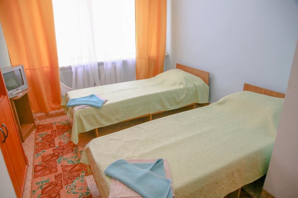 Обои данного номера невозможно описать без мата, они просто отваливались на глазах. Полная антисанитария в номере и в сан узле, кстати про санузел отдельная тема. Стоит самая простая пластиковая, желтая ванна без шторки, грязное зеркало и весящие не на чем трубы как в сайлент хилл. Говорить о дополнительных средствах гигиены нет смысла – их нет! В данной ванной мыться было просто очень страшно, и слава богу мы взяли свои полотенца и средства гигиены из дома, поскольку их полотенцами пользоваться было невозможно и просто не безопасно (напоминала серую наждачную бумагу). Сырость, дырки в стенах, отсутствие хотя бы элементарного ремонта, полнейшая антисанитария. Помимо всего прочего кроме нас, присутствовала другая живность, как тараканы, мошки, букашки и самые нами любимые самки комаров с длинными ножками. Конечно, мы сдвинули кровати и это было не критично, нам поменяли постельное бельё, и на просьбу к администрации сделать что-то с невыносимом запахом, они сказали что решат проблему и, внимание, принесли обычный вентилятор и открыли окна. Еще на счёт окон, совершенно обычные деревянные, советские окна, нечего особенного, НО они не закрываются вообще, т.е. они были просто перекошены, москитных сеток конечно же не было.
