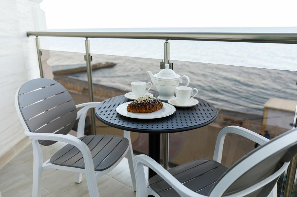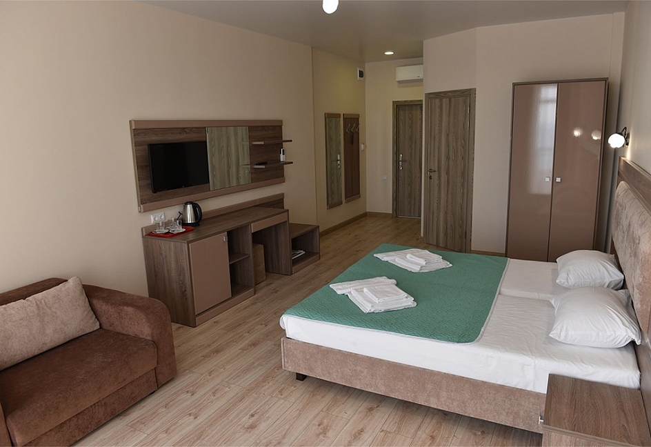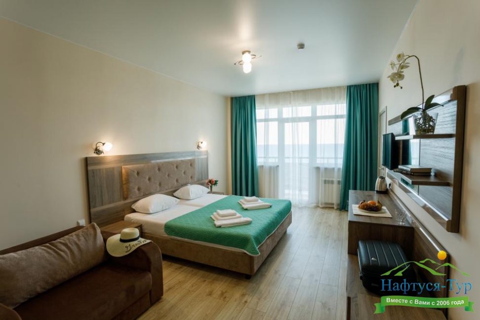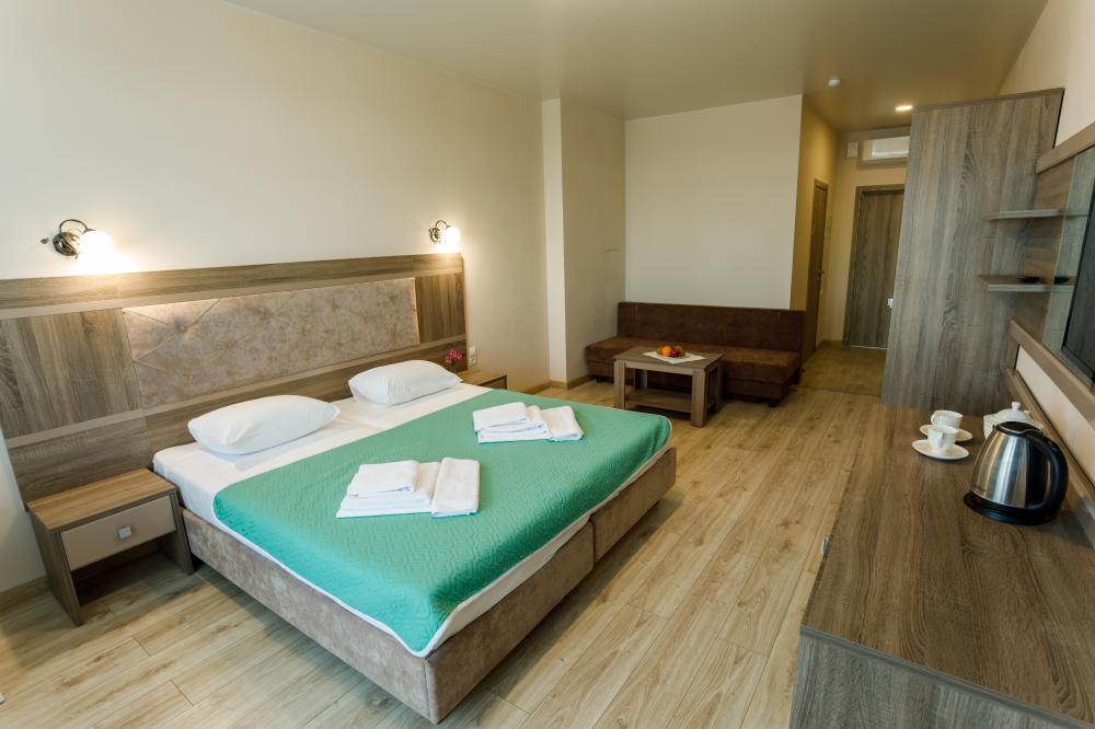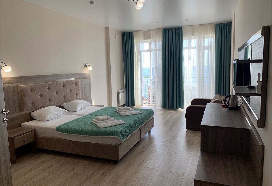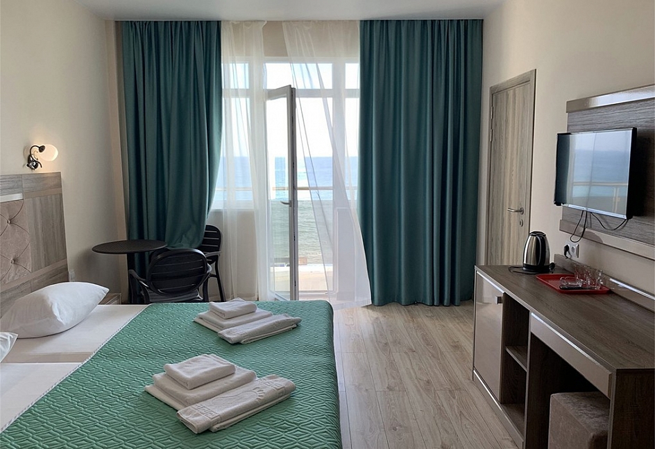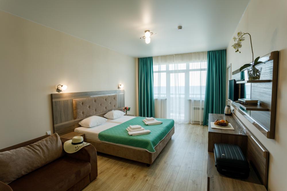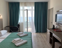 Приятный отель с красивым видом на море, первая линия, нас было три человека, жили в номере люкс. Персонал молодцы стараются, территория не большая, но аккуратная. Есть парковка для авто, бассейн, лаунж-зона, детские зоны.