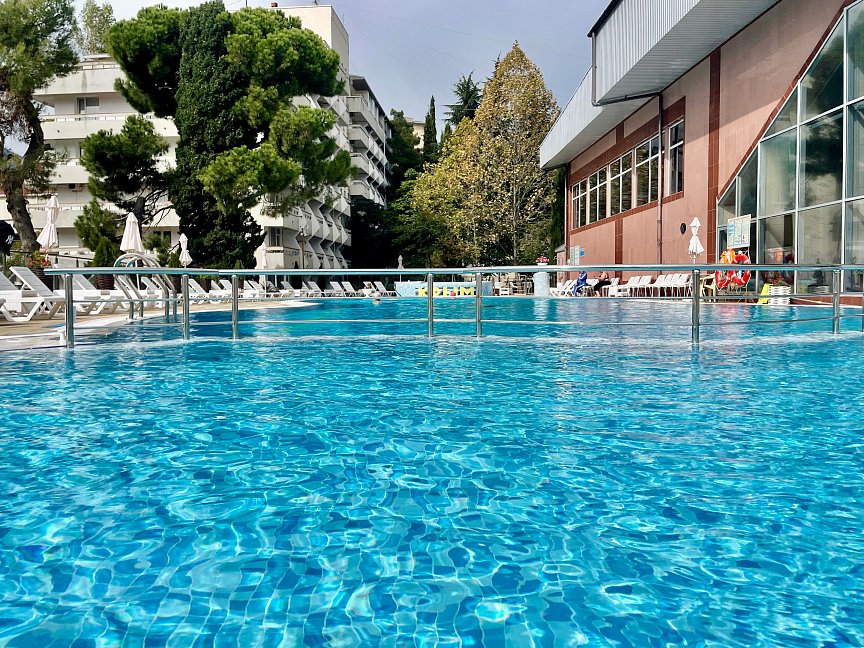 Питание оставляет желать лучшего, так же как и отношения официантов.За 18 дней скатерти не менялись ни разу(!). До моря метров 150, а до санаторного пляжа вдоль набережной нужно пройти еще 1200 шагов. Лечение нормальное, массаж великолепный, чувствуется работа профессионалов. Диджей замечательный. Моя оценка санаторию 3.