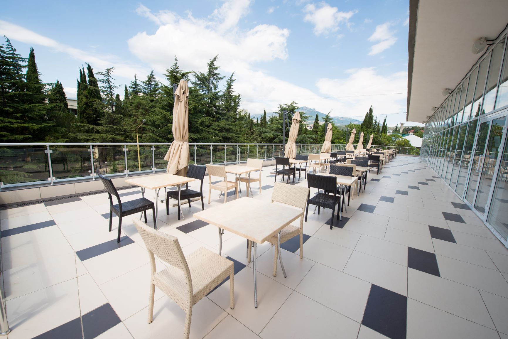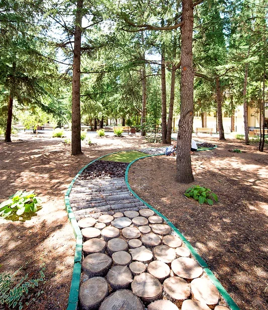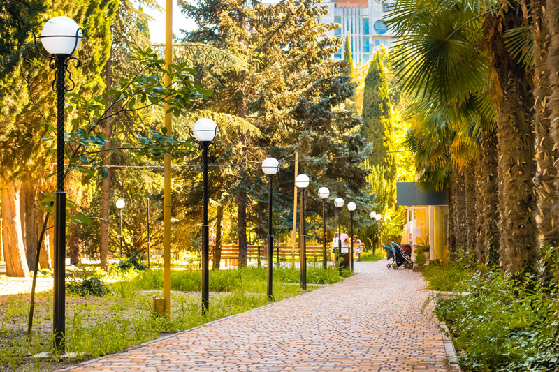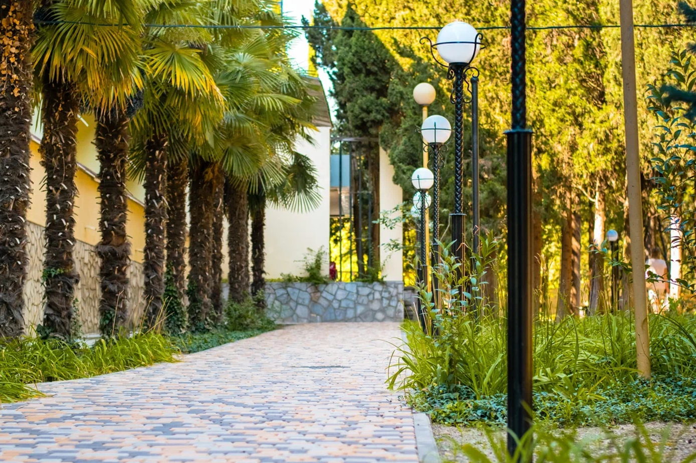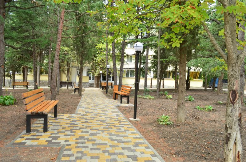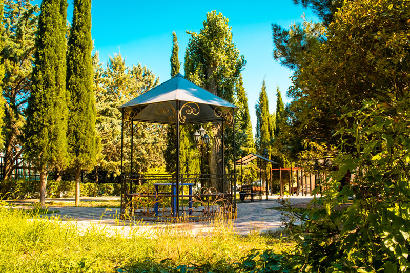 - расположен на территории прекрасного парка с тенистыми аллеями
