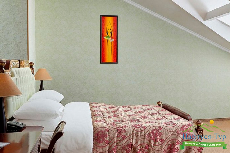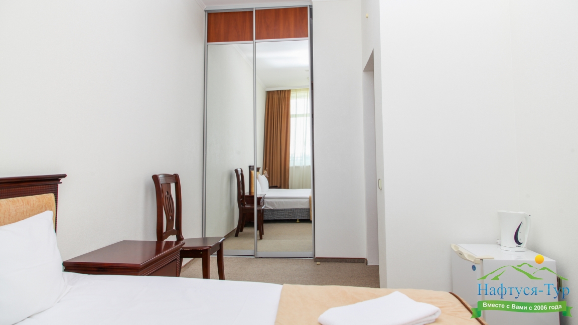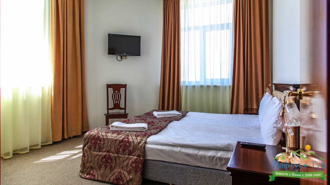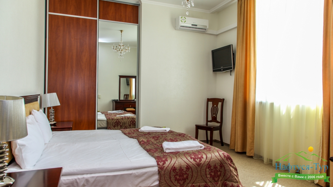 Выбрали и бронировали этот отель через туроператора "Нафтуся тур". Останавливались на недельку. Заселились без проблем. Номера достаточно просторные, большие двухспальные кровати, есть холодильник, телевизор, мини-бар. На территории имеется бассейн и СПА-салон. Администратор и работники отеля приветливые. Всё в шаговой доступности: магазины, море, кафешки, аквапарк Акваленд и т. д. Питание понравилось, традиционная еда на завтрак: каши, запеканки, котлеты, сырники, соусы, подливы. Очень вкусно и просто. От парикмахера и массажа жена осталась довольна. Классные специалисты. Хорошо отдохнули в соляной комнате, релаксируеш себе...Расслабились испробовав несколько видов бань, потом бассейн. Внутри чисто и аккуратно. Можно приезжать сюда в любой сезон, здесь всегда тёплая атмосфера. Нам приятно тут было проводить время. Советую!!!